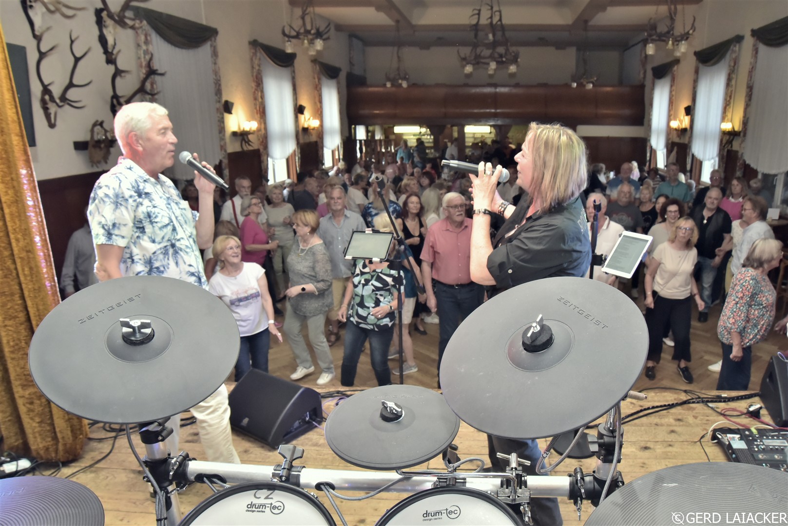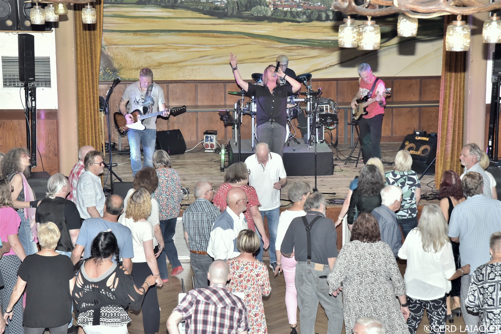 Der Saal war wieder einmal gut gefüllt und die fleißige Bedienung vor und hinter der Theke hatten wieder einmal alle Hände voll zu tun. Mit zwei tollen Sängern Sonja und Holger und super Musikern überraschten sie alle Anwesenden. Moni begrüßte zu anfangs, wie immer die Band und das tanzfreudige Publikum auf das herzlichste bevor die Party steigen konnte. Übrigens setzt sich der Name der Band ROSCH aus den Anfangsbuchstaben ihrer Mitglieder zusammen: R für Rainer an der Gitarre, O für Olaf am Bass, S für Sonja am Gesang, C für Christian am Schlagzeug und H für Holger, der sowohl Gitarre spielt als auch singt. Eine kreative Idee, die den Zusammenhalt der Band perfekt widerspiegelt.