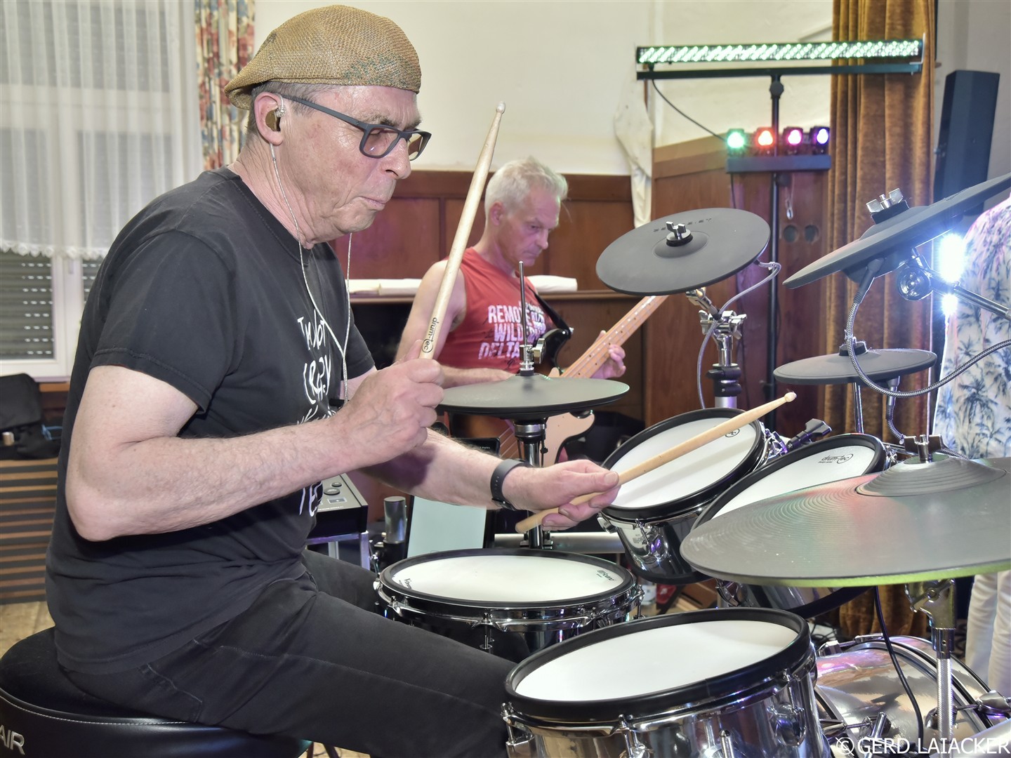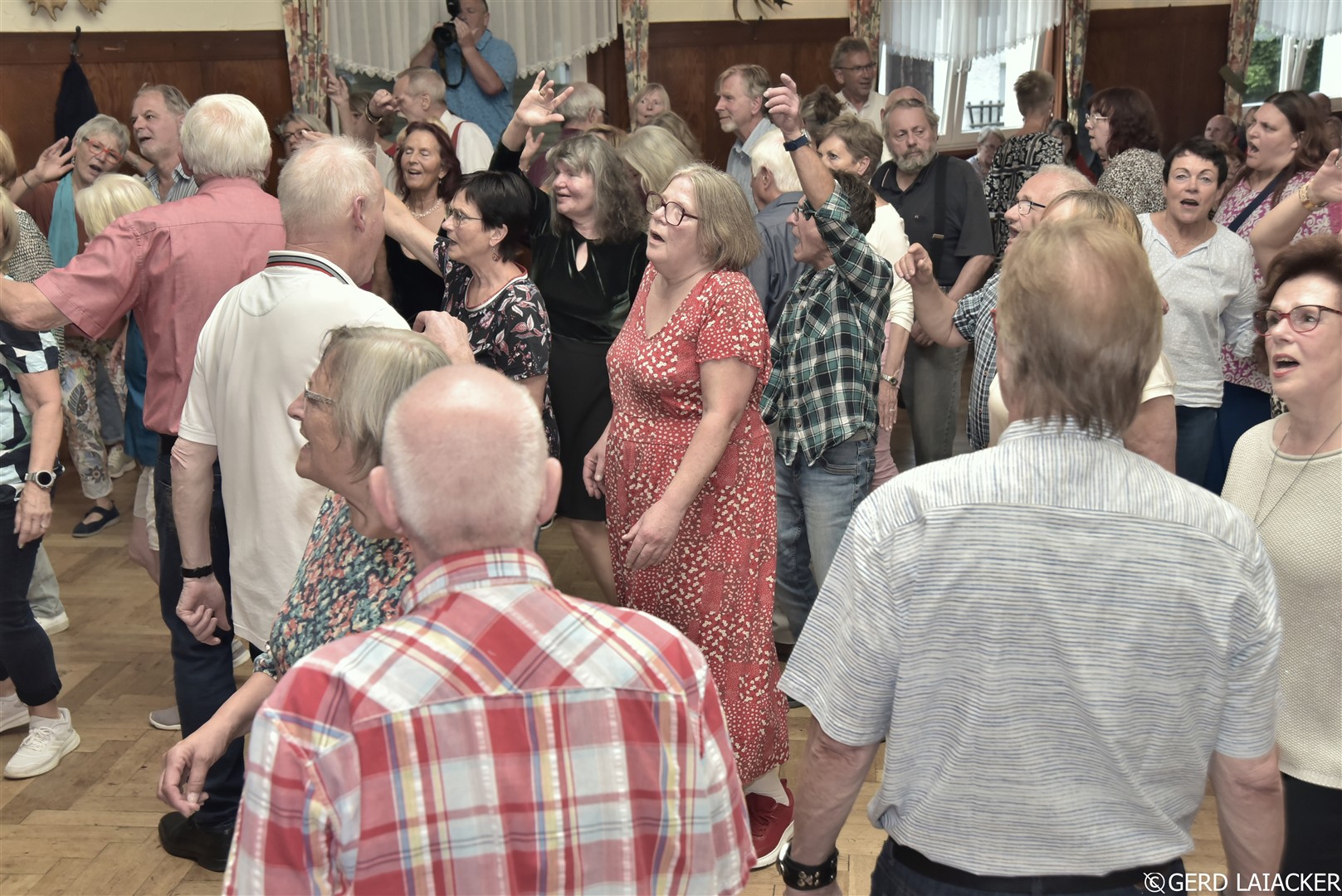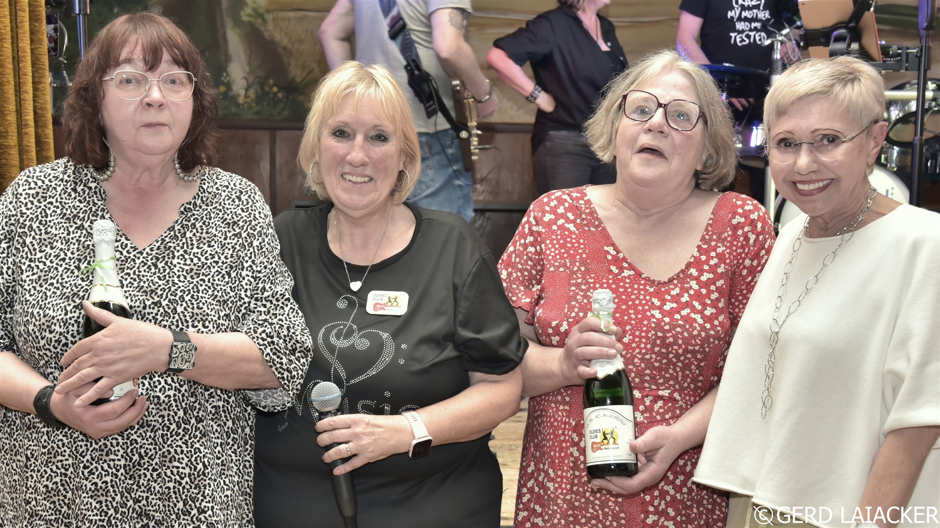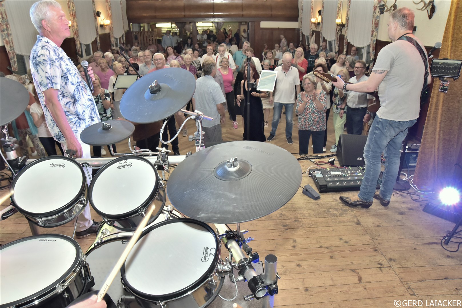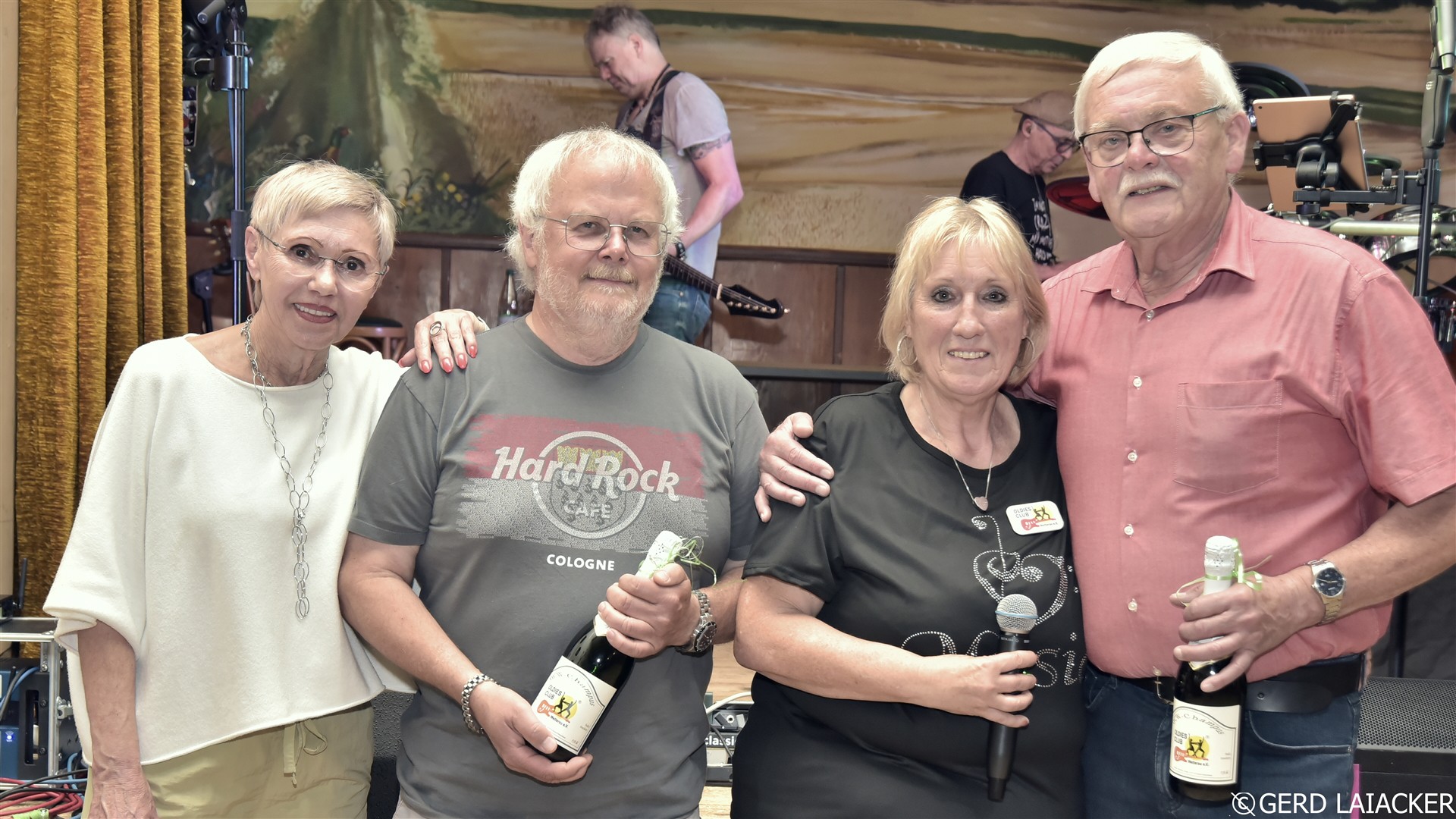 Schon bei den ersten Klängen von „Same Old Blues“ und „Blue on Black“ war die Spannung im Saal spürbar – das Publikum konnte es kaum erwarten. Bei den bekannten Songs von Steppenwolf, wie „Born to be Wild“ oder „Far Far Away“ von Slade ging es dann so richtig los und die Tanzfläche wurde im nu belagert. Es war wieder einmal eine sensationelle Stimmung. In der Pause wurden dann unsere Geburtstagskinder Hans Gilbert und Siggi Engel mit je einem Fläschchen OCW Schampus überrascht. Bemerkenswert, dass an diesem Abend einige Mitglieder und Freunde Geburtstag hatten und ihren Geburtstag mit uns gemeinsam feierten.
