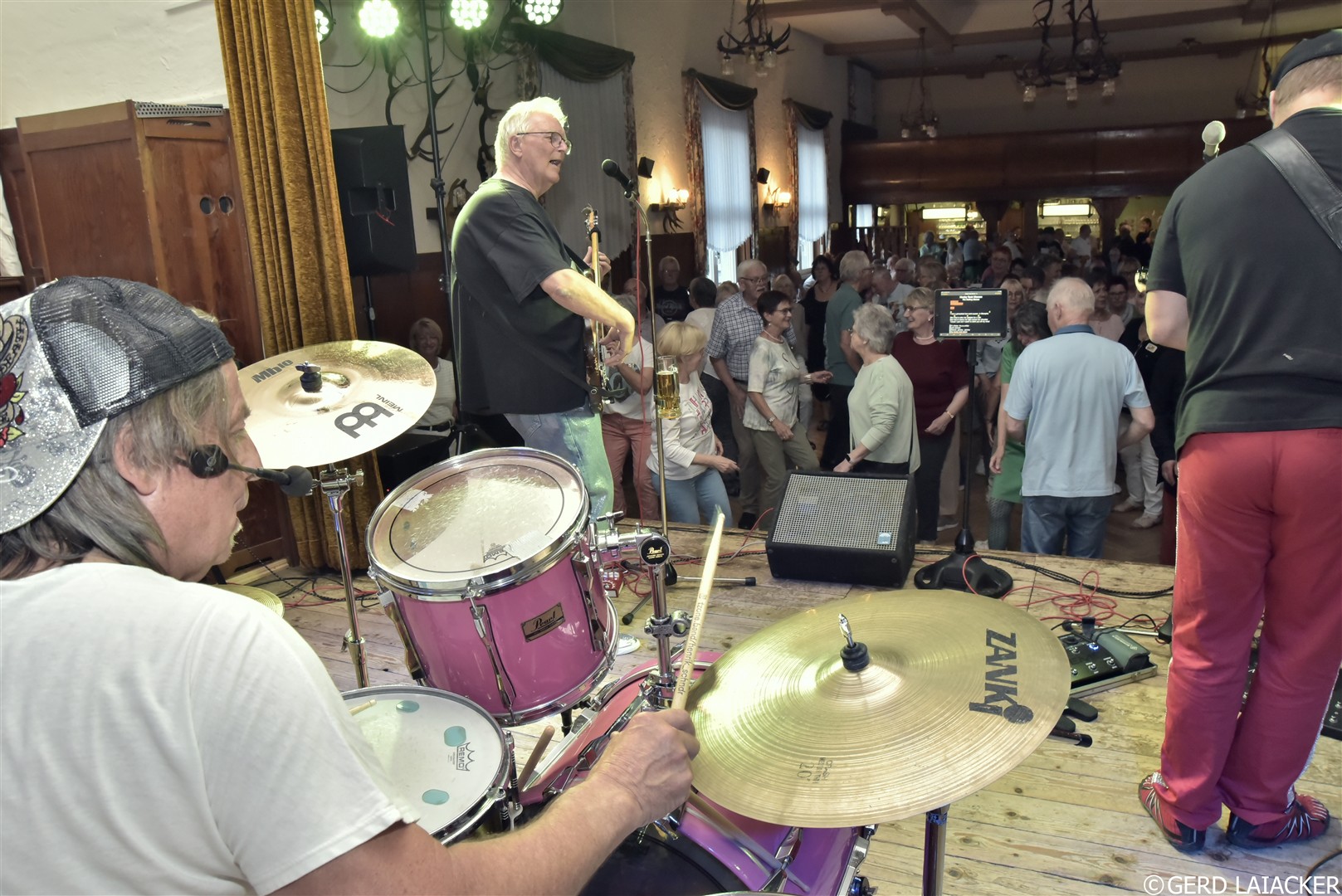 Kaum war die Begrüßung vorbei, füllte sich die Tanzfläche mit begeistertem Publikum, die sich zu Klassikern wie „Locomotive Breath“, „Rock 'n' Roll Fantasy“ von Bad Company sowie den T-Rex-Hits „20th Century Boy“ und „Get It On“ bewegten. Bei den Kultsongs „Amarillo“ von Tony Christy und „Beautiful Sunday“ von Daniel Boone aus den 70-ern stimmte das Publikum lautstark mit ein, denn diese Songs kannte jeder.