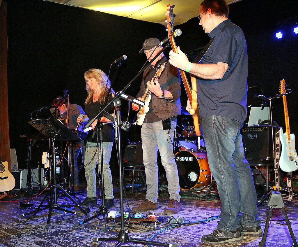 Nachdem Moni alle Mitglieder und Gäste auf das Herzlichste begrüßt und noch ein paar Veranstaltungstipps gegeben hatte, konnte der Abend endlich starten. Schon bei den ersten Songs, zum Beispiel bei „Take It Easy“ von den legendären Eagles oder bei „Have You Ever Seen The Rain“ von CCR füllte sich sofort die Tanzfläche. Bemerkenswert bei „Twist Off“ ist, dass jedes einzelne Bandmitglied mal „dran ist“ mit der Performance eines Songs. So − natürlich − auch Frontsängerin Ingrid, die Suzie Quatros „If You Can‘t Give Me Love“ oder auch „Venus“ von Shocking Blue sehr authentisch zum Besten gab und damit alle begeisterte. Es war eine musikalische Zeitreise in die 60er- bis 80er-Jahre. Mit weltbekannten Weisen wie „Long Train Running“ von den Doobie Brothers, „Dreadlock Holiday“ von 10cc, „Get Down“ von Gilbert O’Sullivan oder „Davy‘s On The Road Again“ von Manfred Mann verzauberte die Band alle an diesem Abend und es gab mehrmals frenetischen Beifall.