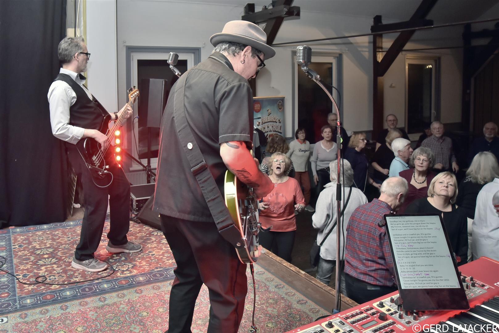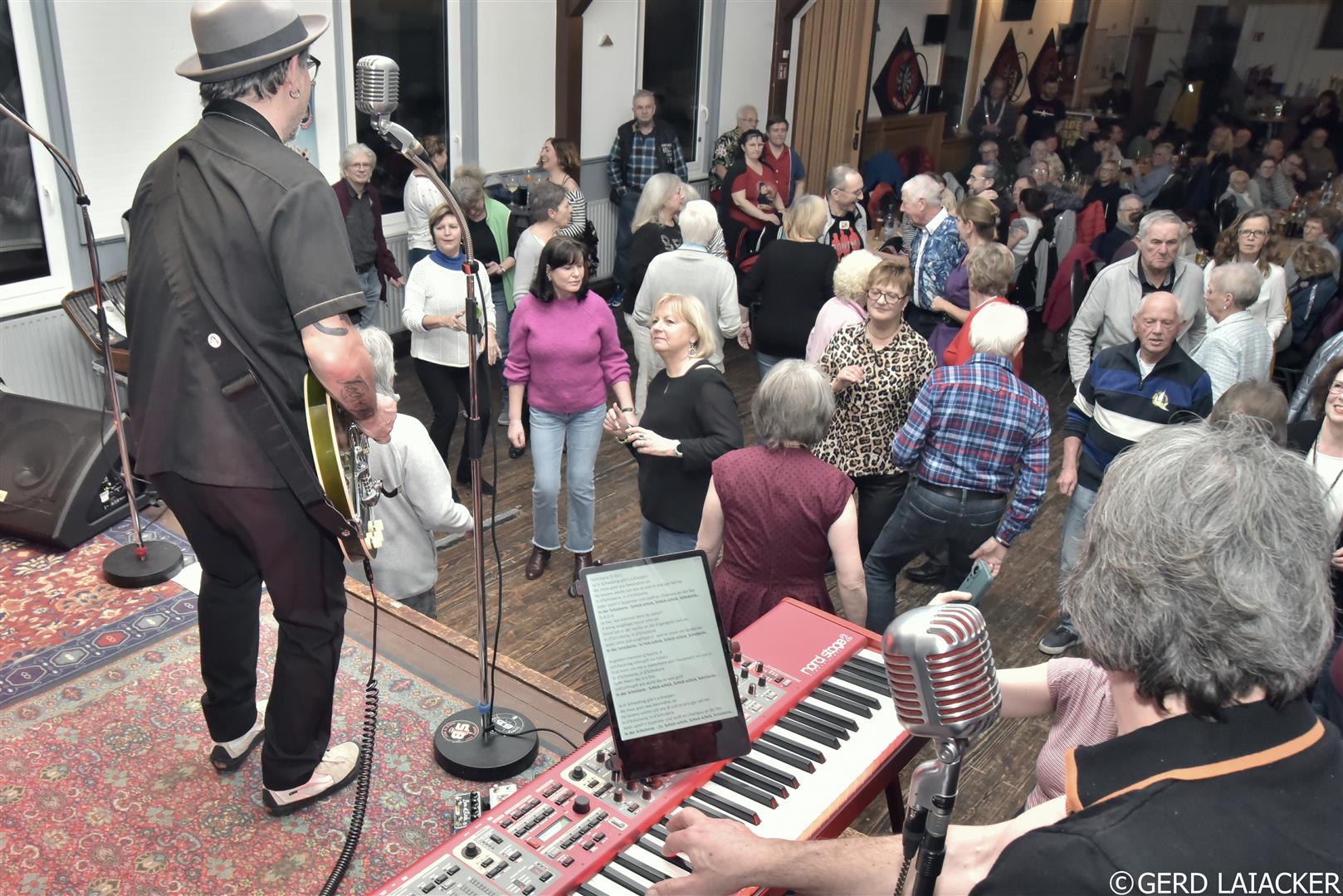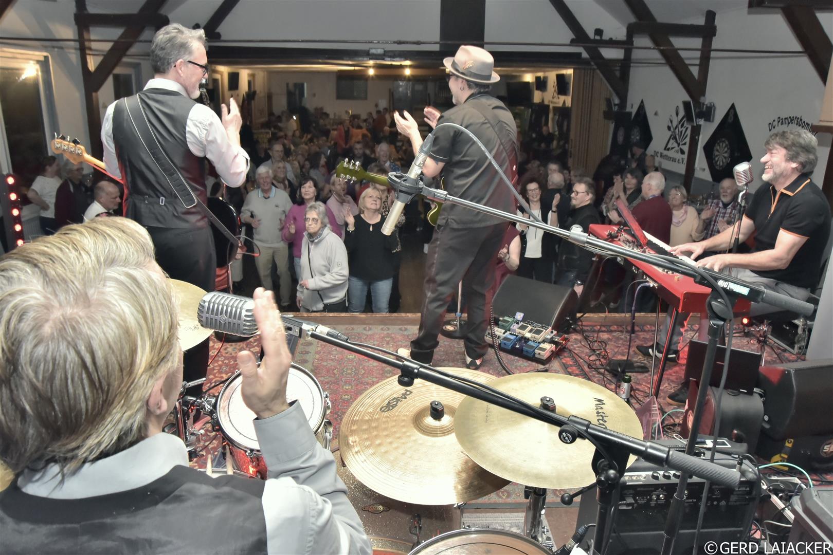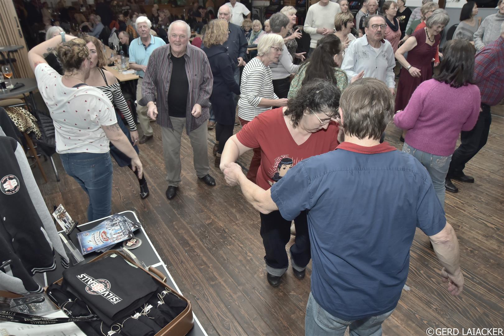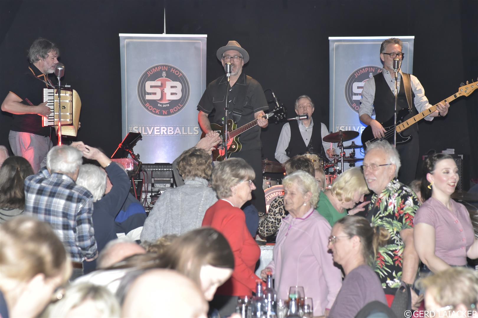 Mit den „Silverballs“ am ersten Februar-Clubabend war es – wie erwartet – wieder einmal begeisternd. Man musste schon rechtzeitig da gewesen sein, um noch einen Platz im Saal zu ergattern, denn mittlerweile weiß man: Wo die „Silverballs“ aufspielen, ist Stimmung auf höchstem Niveau garantiert. Nachdem Moni die Band und das Publikum auf das Freundlichste begrüßt hatte, wurde sofort in die Tasten gehauen, scharrten doch bereits Tänzer und Tänzerinnen ungeduldig mit ihren „Hufen“. Und wie sollte es anders sein: Ein paar Takte waren erst gespielt und die Tanzfläche bereits rappelvoll. Bei „Be my guest““, „Coupe de Ville“ oder bei „The Wanderer“ ging dann auch gleich so richtig die Post ab, wie man so schön sagt. Aber nicht anders kennen wir unsere tanzfreudige Elite. Unter den zahllosen Gästen waren auch Rock ‘n‘ Roller aus Aschaffenburg, Offenbach, Gießen, Gelnhausen ect. angereist. Die „Silverballs“ spielten aber nicht nur Rock‘n‘Roll, sondern bediente auch andere Genres wie Twist oder Rock.