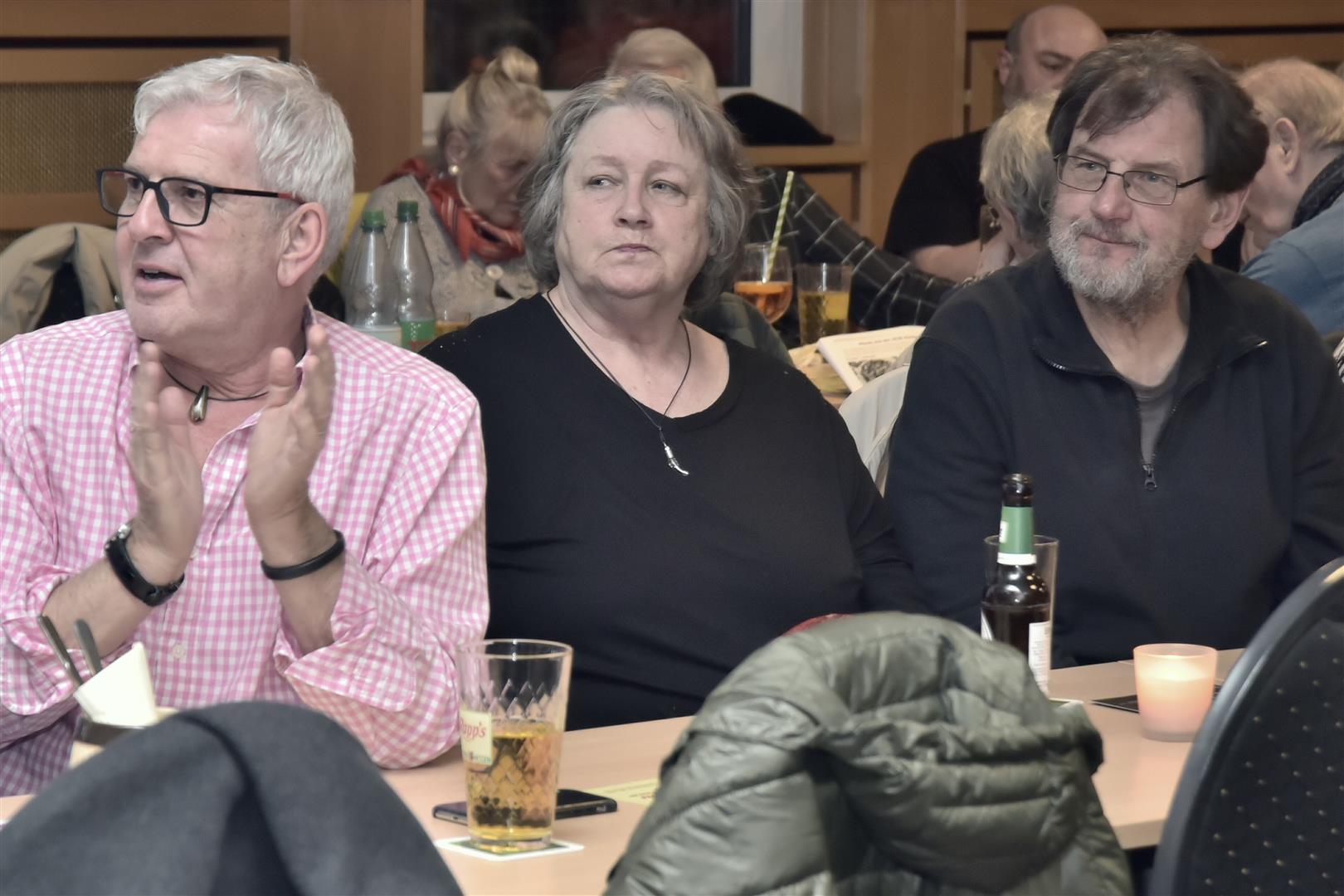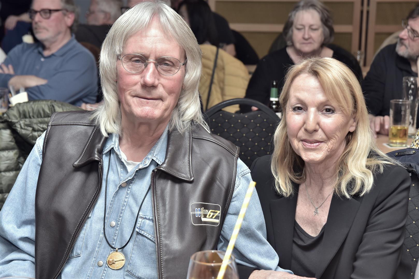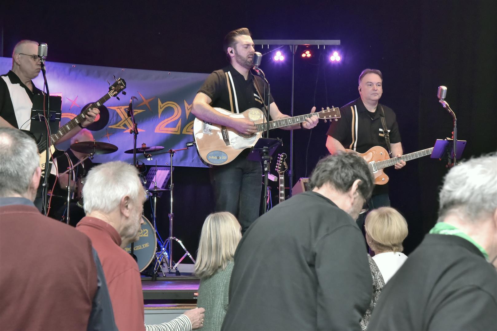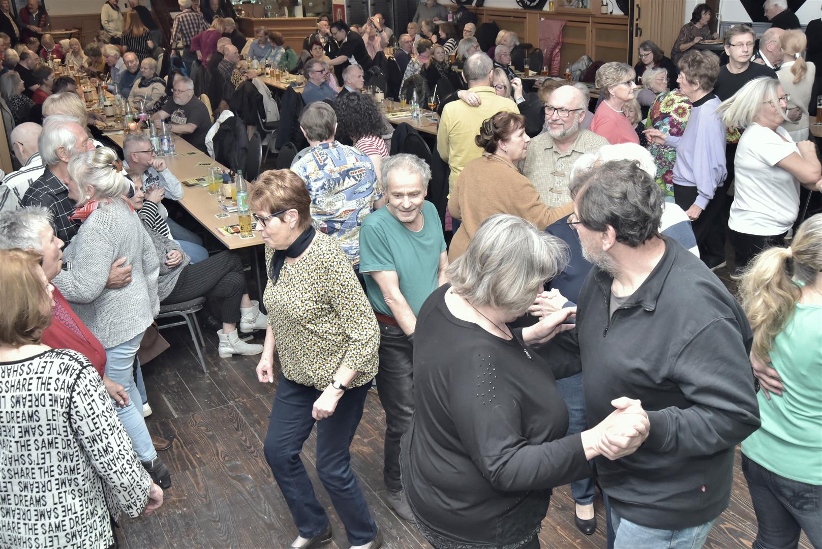 Diesmal ging es in die 50er und 60er Jahre, in die Blütezeit des Rock 'n' Roll. Das Raabennest war bis auf den letzten Platz besetzt und das Publikum war total begeistert von dem Repertoire der Band. Die Tanzfläche war ständig belegt. Mit Songs, wie „Blues Suede Shoes“,“Great Balls of fire“, „Johnny B. Good“ sowie auch „Biona Serra“ kamen alle ganz schön ins Schwitzen. Bei Schmusesongs „A Teenager in Love“, „Diana“ (von Paul Anka),“Dream Lover“ oder mit „Under The Boardwalk“ ging es dann etwas ruhiger zu. Das waren Songs aus längst vergangenen Zeiten, die man nie vergisst. In der Pause überraschten Roswitha und Moni unsere langjährigen Mitglieder Axel und Karola Pfadenhauer im Namen des Vorstandes mit der Ehrennadel in Silber. Diese Ehrennadeln für 15-jährige Mitgliedschaft hätten sie eigentlich schon in 2019 erhalten sollen. Dann kam ja bekanntlich Corona, somit konnten wir in 2023 nachträglich unserer treuen Mitglieder mit der Ehrennadel überraschen. Die Freude war groß, das sah man ihnen sichtlich an. So sollte es auch sein.