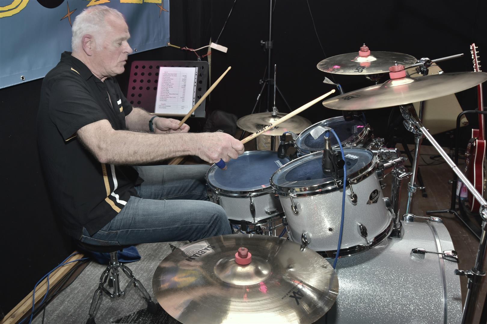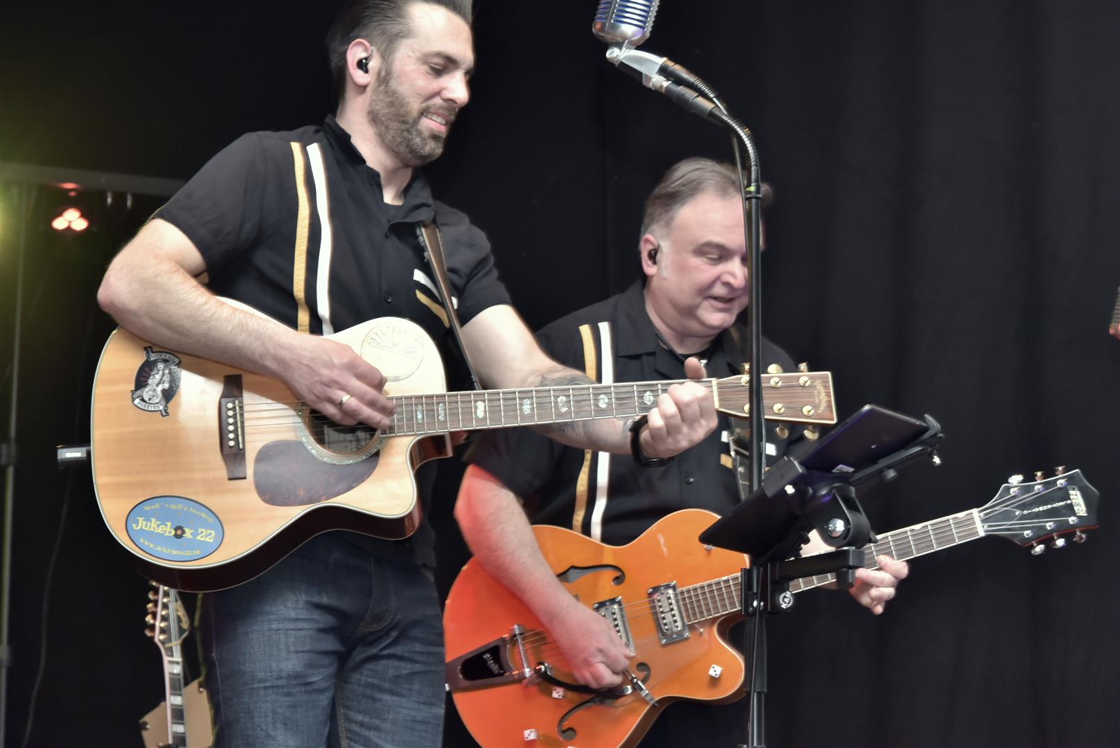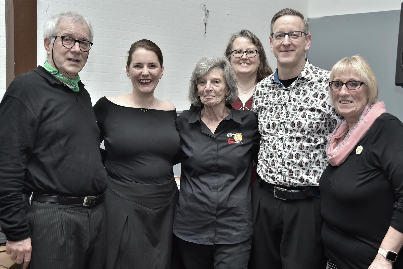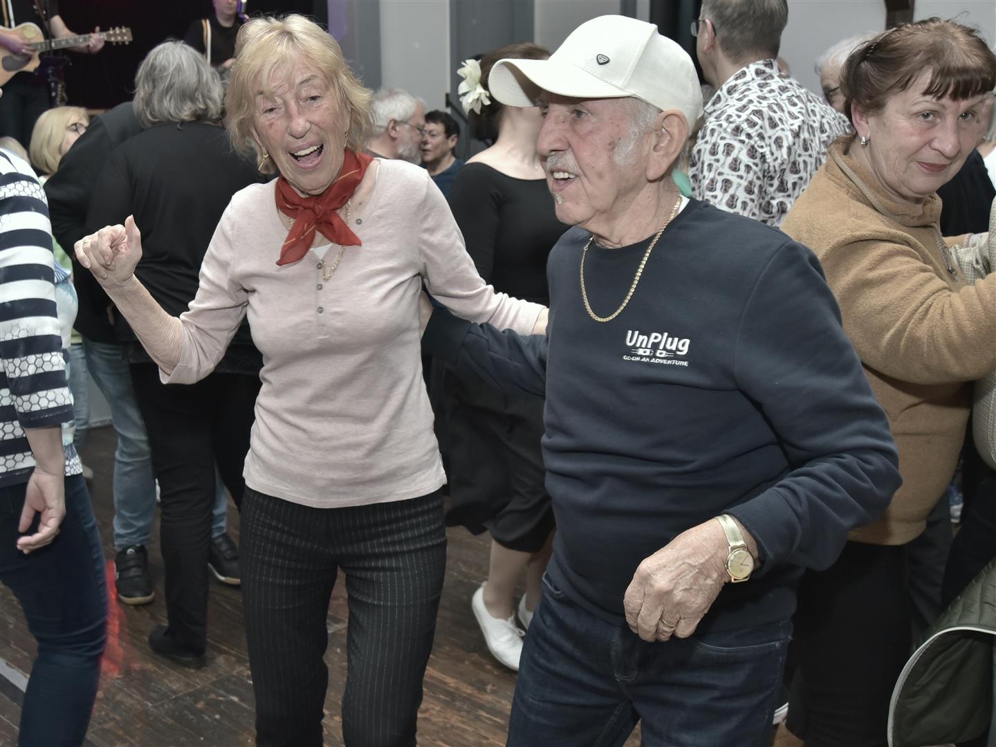 Diesmal ging es in die 50er und 60er Jahre, in die Blütezeit des Rock 'n' Roll. Das Raabennest war bis auf den letzten Platz besetzt und das Publikum war total begeistert von dem Repertoire der Band. Die Tanzfläche war ständig belegt. Mit Songs, wie „Blues Suede Shoes“,“Great Balls of fire“, „Johnny B. Good“ sowie auch „Biona Serra“ kamen alle ganz schön ins Schwitzen. Bei Schmusesongs „A Teenager in Love“, „Diana“ (von Paul Anka),“Dream Lover“ oder mit „Under The Boardwalk“ ging es dann etwas ruhiger zu. Das waren Songs aus längst vergangenen Zeiten, die man nie vergisst. In der Pause überraschten Roswitha und Moni unsere langjährigen Mitglieder Axel und Karola Pfadenhauer im Namen des Vorstandes mit der Ehrennadel in Silber. Diese Ehrennadeln für 15-jährige Mitgliedschaft hätten sie eigentlich schon in 2019 erhalten sollen. Dann kam ja bekanntlich Corona, somit konnten wir in 2023 nachträglich unserer treuen Mitglieder mit der Ehrennadel überraschen. Die Freude war groß, das sah man ihnen sichtlich an. So sollte es auch sein.