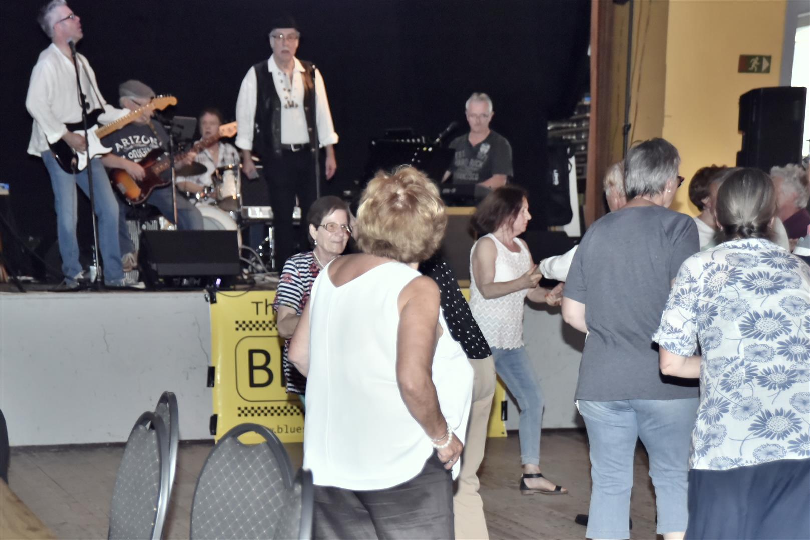 Schon bei den ersten Songs „Sweet Home Chicago“, Susie Q“ oder „Flip Flop & Fly“ war die Tanzfläche wieder einmal gut gefüllt. Gekonnt war der „Taxi Driver Blues“, welchen Rolf Ackermann auf seiner Mundharmonika dem Publikum präsentierte. „Blues Taxi“, ein eingespieltes, routiniertes Team, es hat alles gepasst. Bemerkenswert, dass drei Sänger die Band krönen. Peter Bayer am Bass mit seiner rauen Stimme verwöhnte das Publikum mit dem Song „When I Was Young“. Erinnert wurde auch an den großartigen Künstler J.J. Kale mit dem Weltklassiker „Cocaine“.
