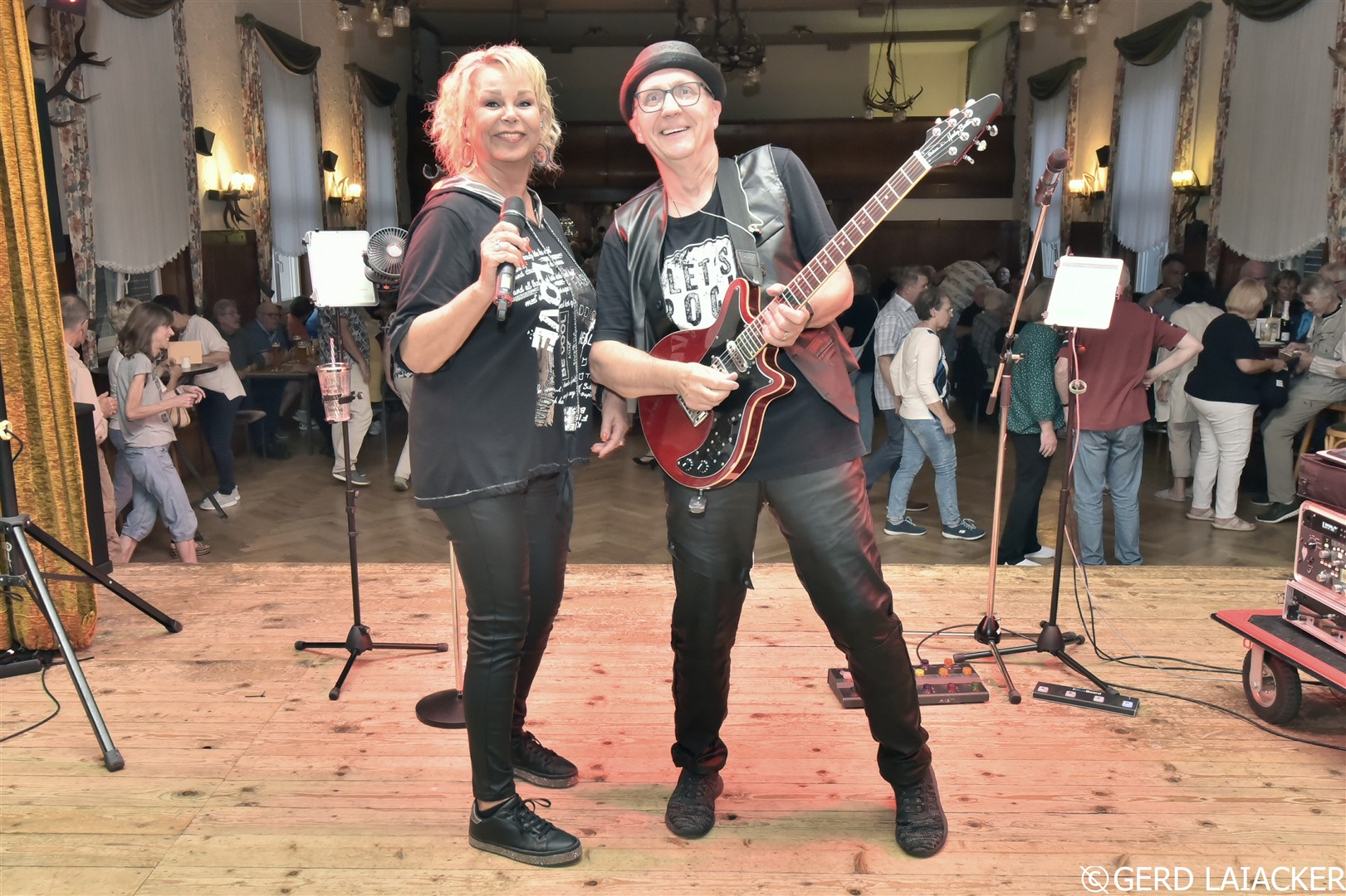 Schon mit den ersten Songs – „Tulsa Time“ von Eric Clapton und „Don’t Stop“ von Fleetwood Mac – war die Tanzfläche voll und die Party in vollem Gange. Die musikalische Ausrichtung des Abends war Rock, Pop und Rock’n’Roll – ein Mix, der bestens ankam. Mit ihrer Bühnenpräsenz und stimmlichen Ausdruckskraft begeisterten Caro und Roger das Publikum.