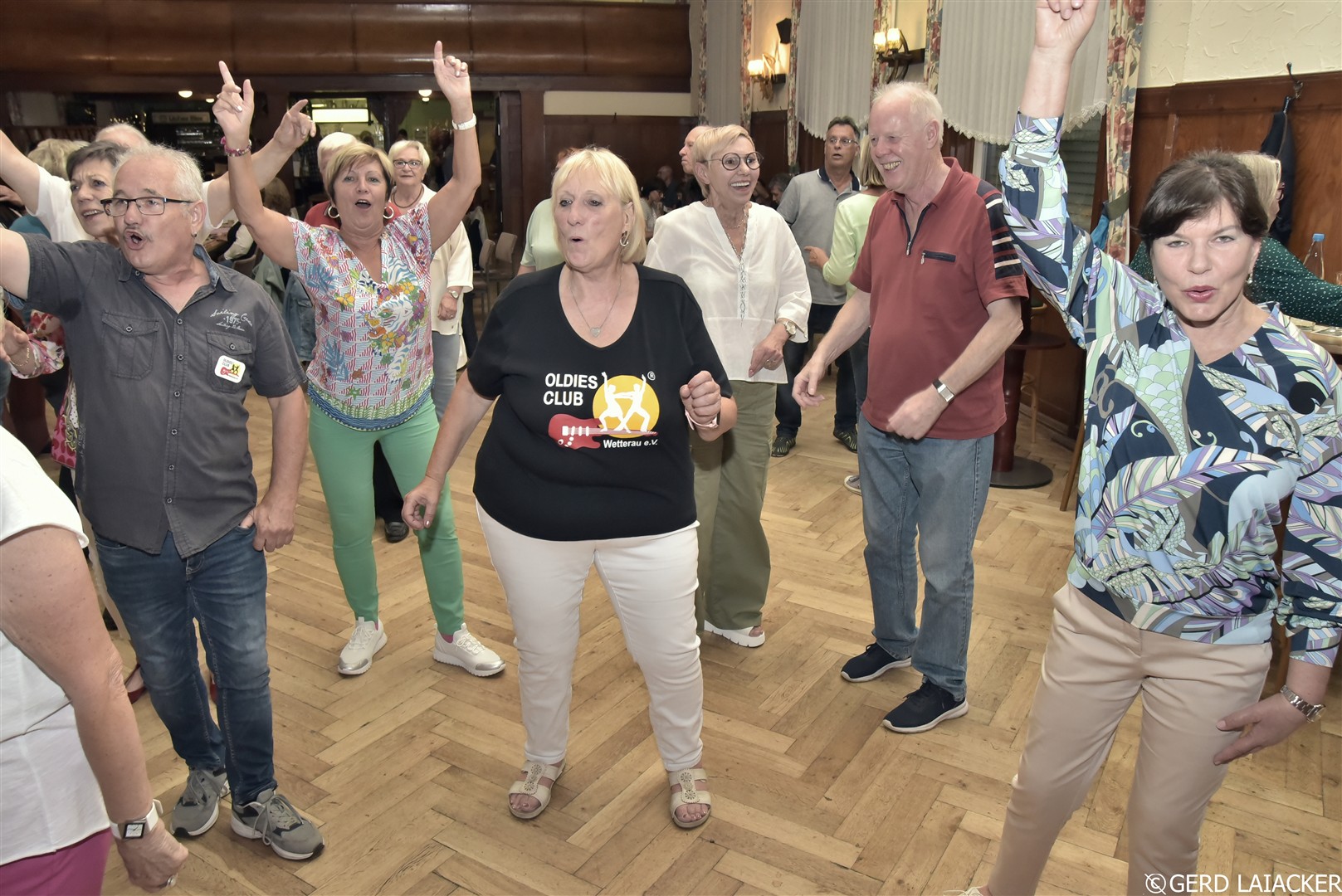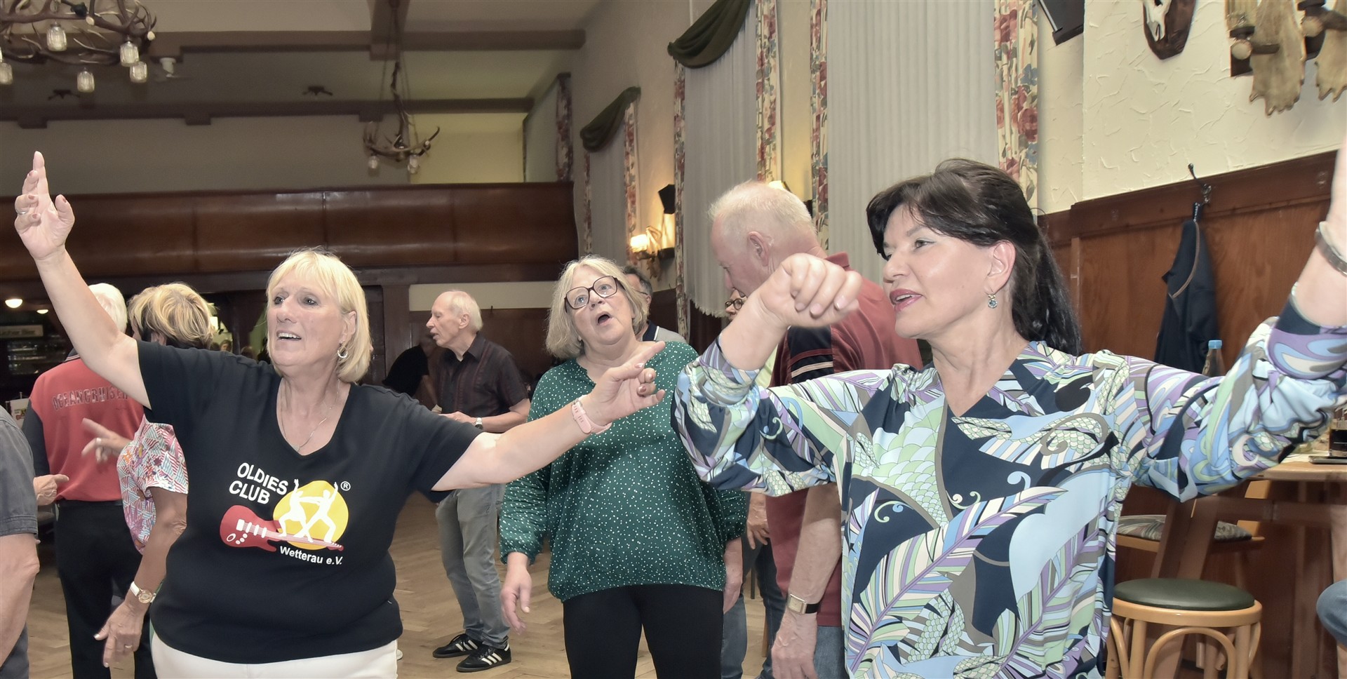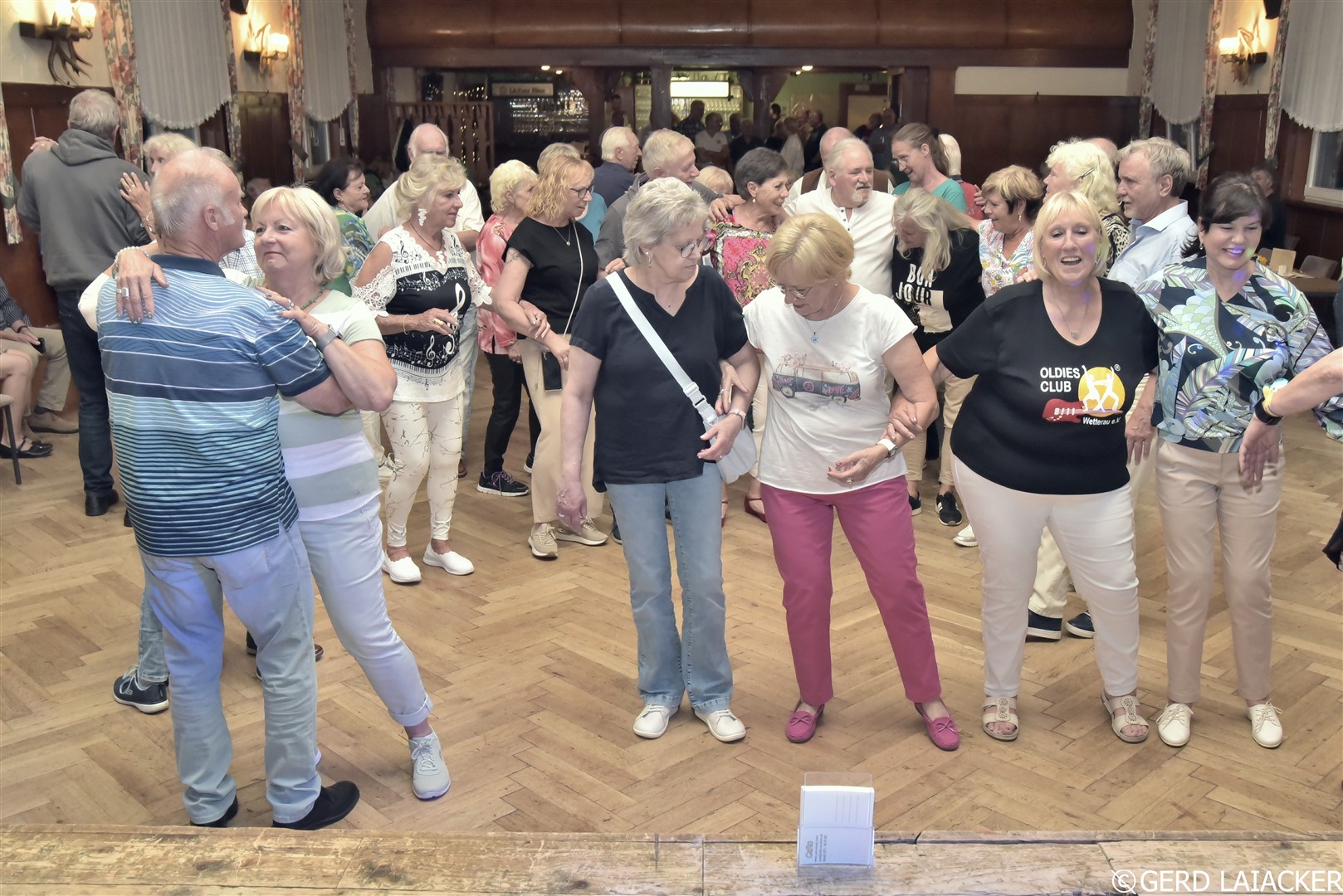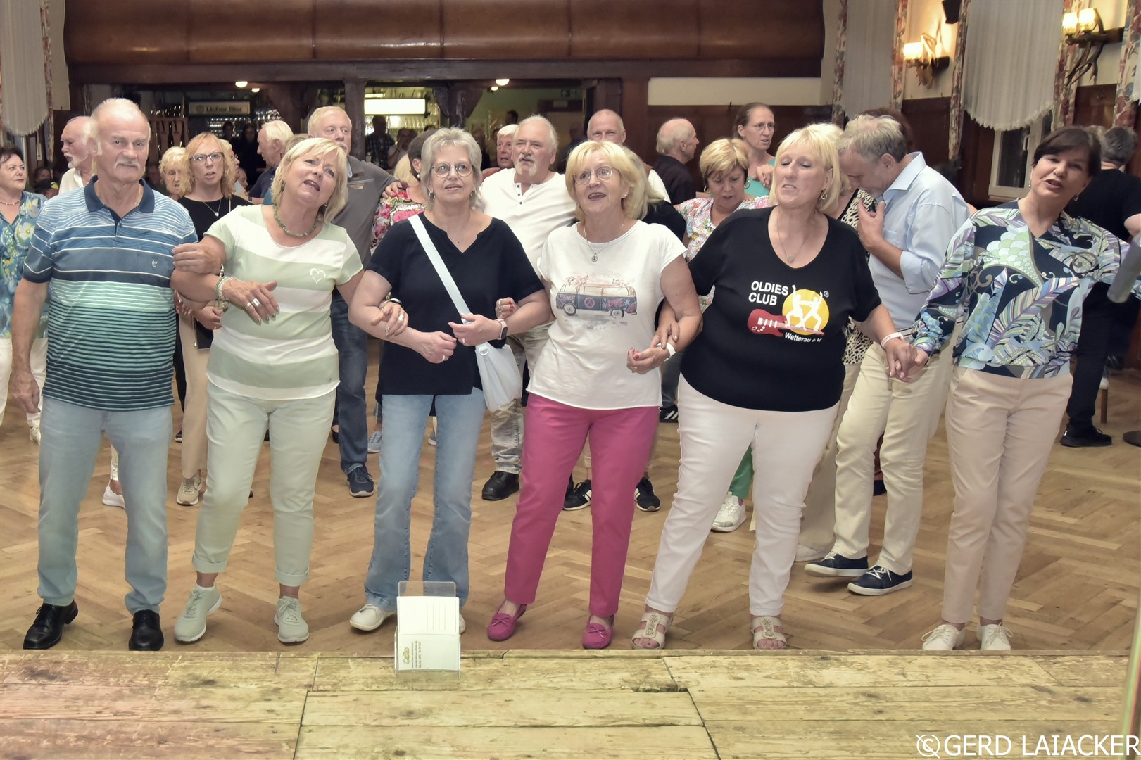 Ganz spontan legten Caro und Roger “Aber Dich gibt’s nur einmal für mich“ (von den legendären Flippers) aufs Parkett – ein echter Ohrwurm, der sofort zum Mitschunkeln und Mitsingen einlud. Zwar nicht im offiziellen Programm, aber als Überraschungseinlage ein voller Erfolg. So etwas hatten wir bei unseren zahlreichen Clubabenden noch nie erlebt!“
