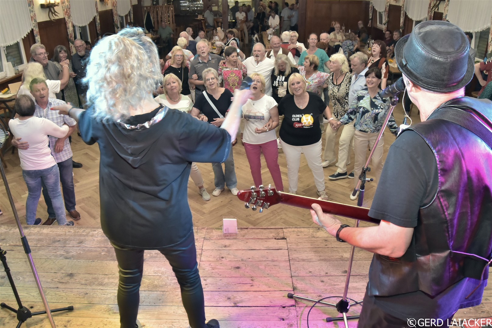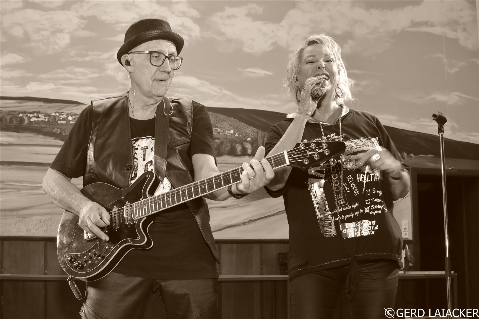 Leider fiel der Drummer der Band Drama Queen Agancy (DQA) aus und so war es für Caro und Roger keine Schwierigkeit diesen Clubabend zu zweit zu stemmen, zumal beide auch die Bandleader der DQA Band sind. Wer Caro und Roger kennt, weiß, was für eine tolle Stimmung aufkommt. Wie immer begrüßte Moni zuerst einmal das Publikum und die Band und wünschte allen viel Spaß.