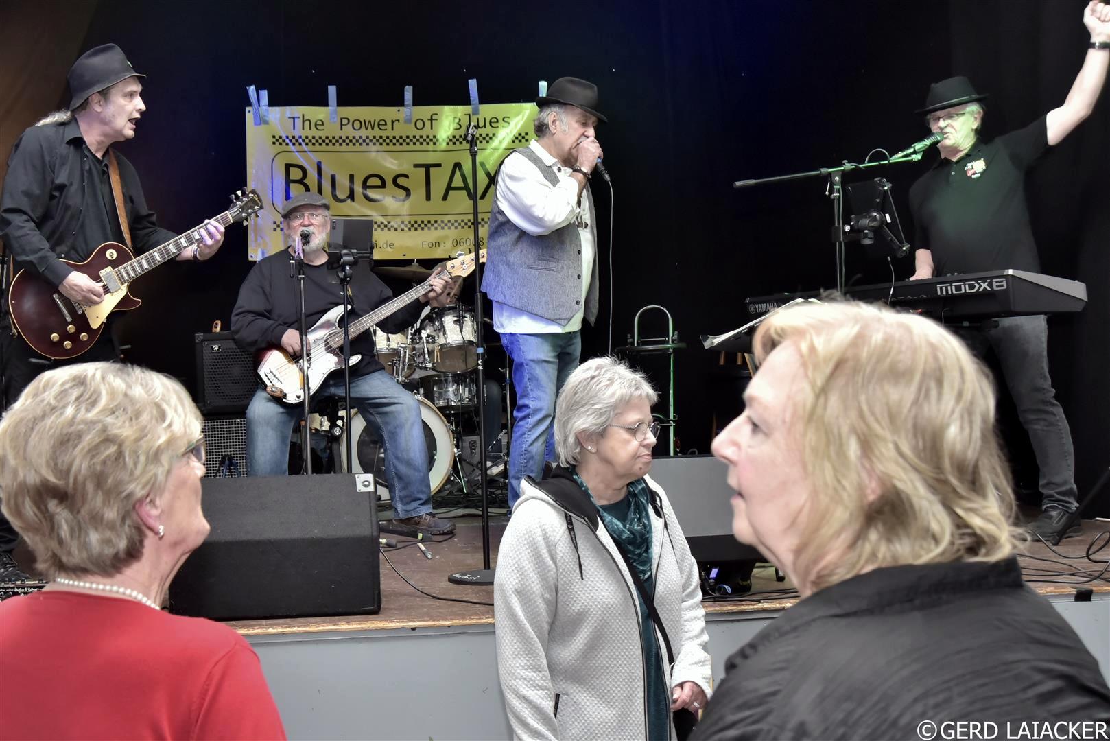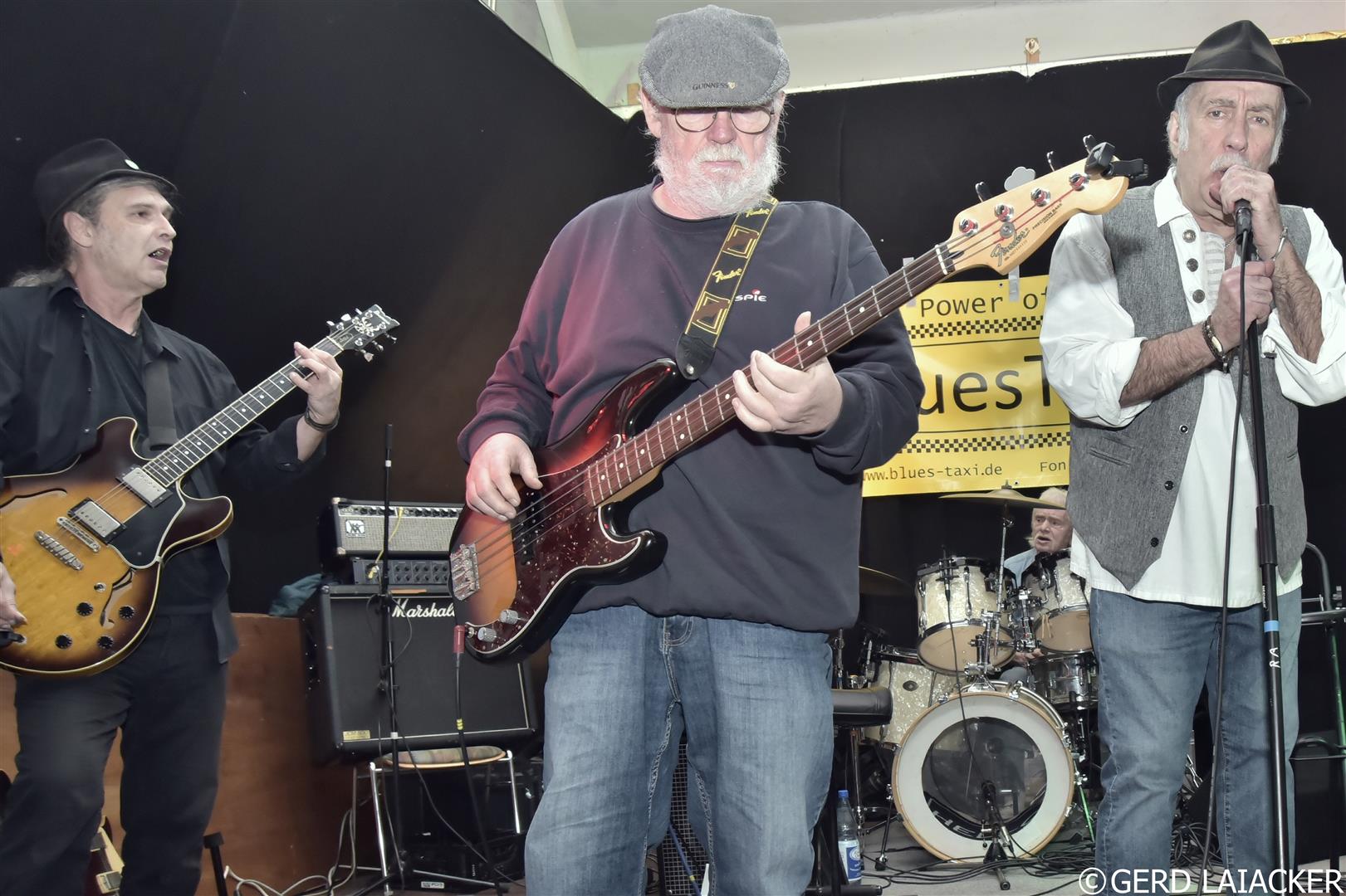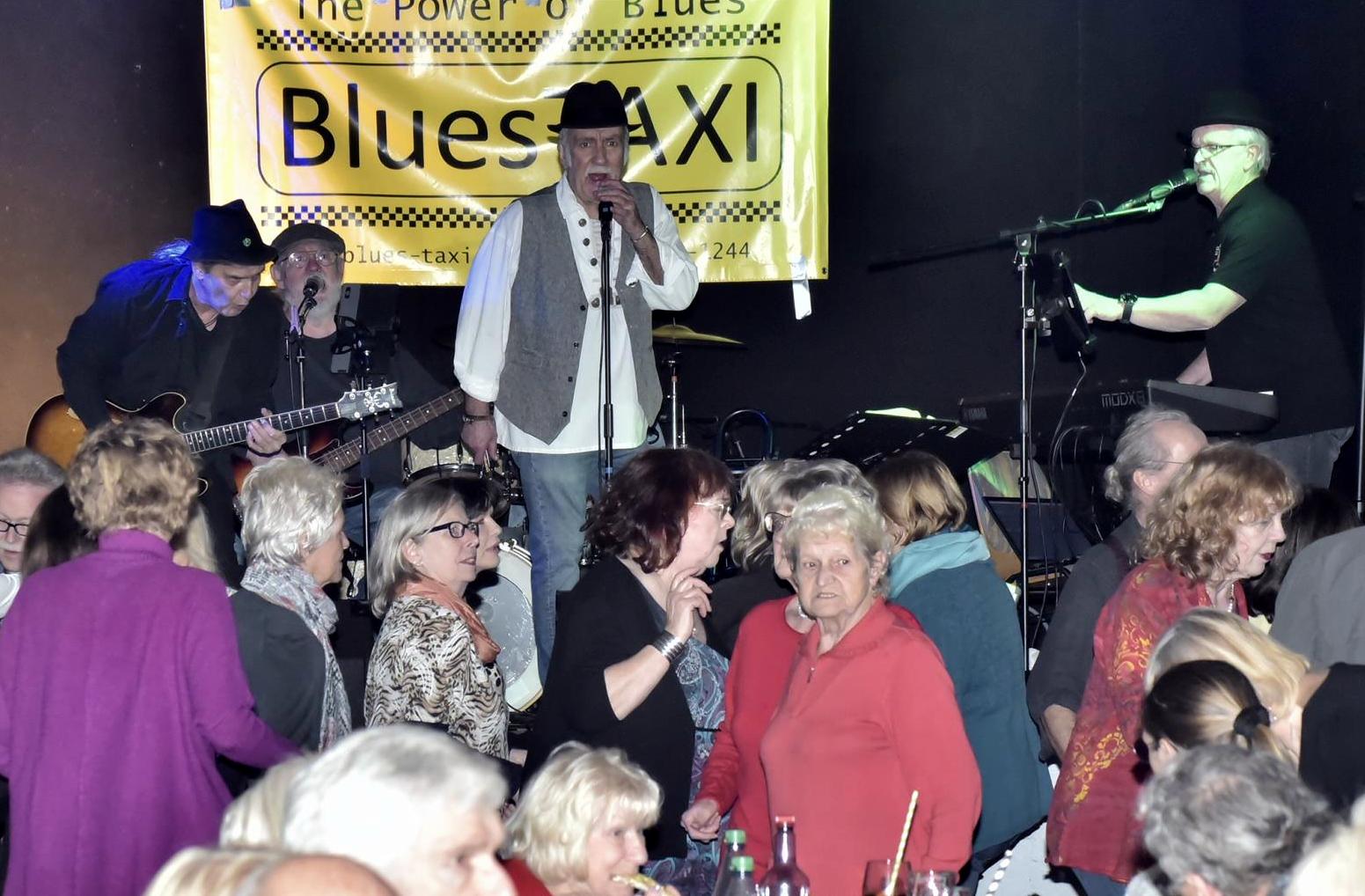 Bevor die Band ihr zweites Set begann, gratulierten Britta und Moni unserem Mitglied Kriemhilde Endler herzlich zu ihrem runden Geburtstag. Die Band spielte großartige Songs, die auch für Rock’n’Roll-Fans geeignet waren. Titel wie „Jambalaya“, „Skinnie Minni“ und „Shake, Rattle & Roll“ brachten das Publikum zum Tanzen und Feiern. Auch Stones-Fans kamen mit „Honky Tonk Woman“ voll auf ihre Kosten und das Publikum sang begeistert mit. Eric Claptons Klassiker „Lay Down Sally“ und „Cocaine“ kamen beim Publikum ebenfalls sehr gut an. Mit den Liedern „Wonderful Tonight“ und „I Got My Mojo Working“ bedankte sich „Blues Taxi“ beim tanzfreudigen Publikum und verabschiedete sich schließlich.