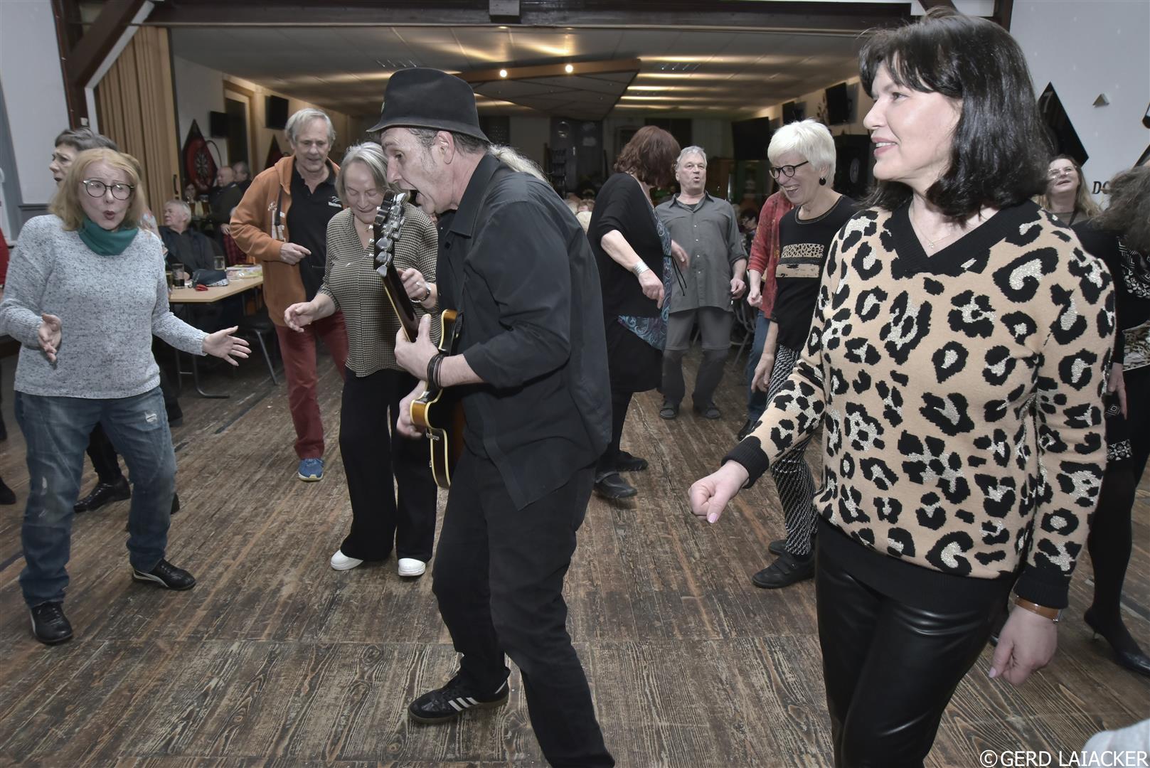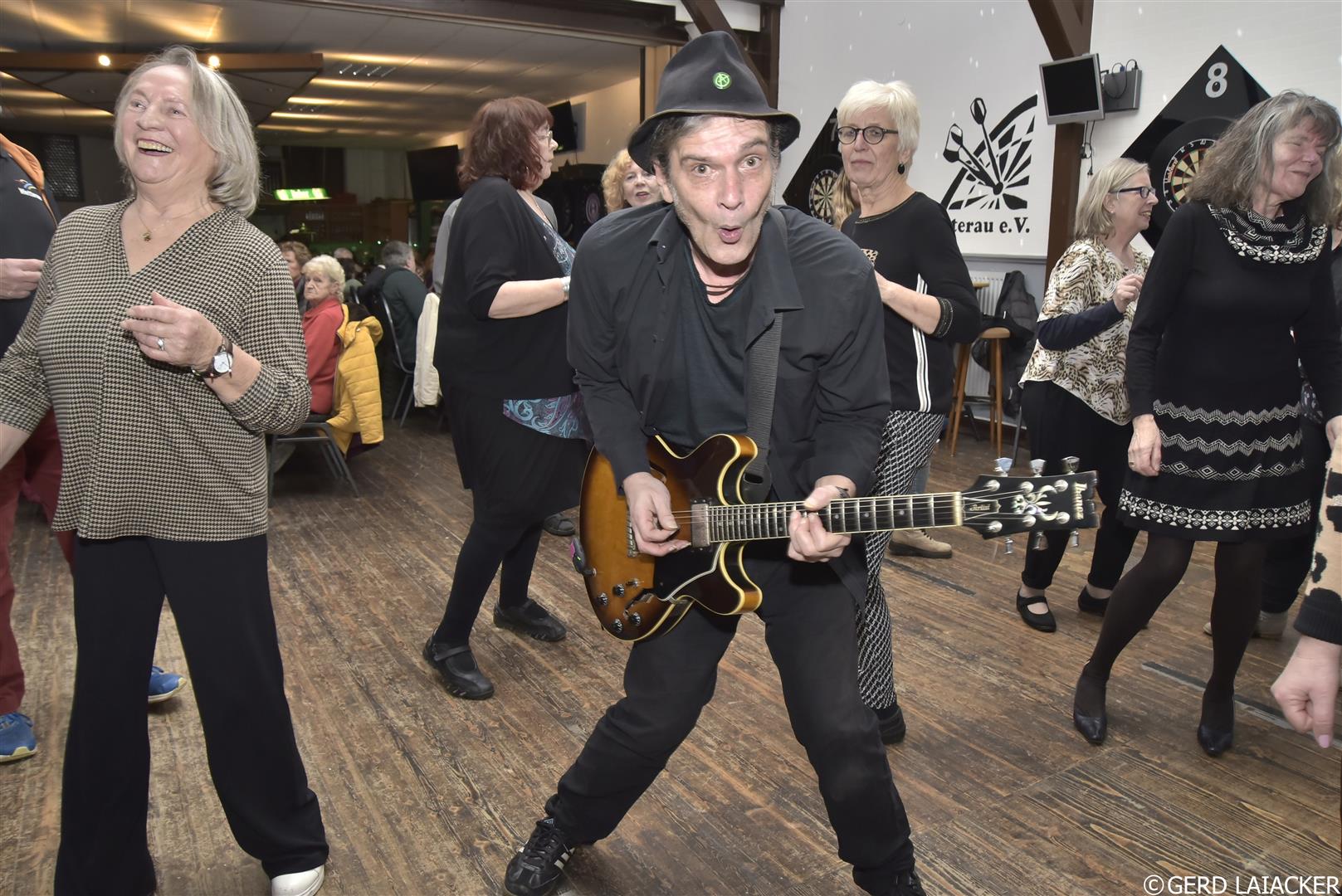 Nachdem Moni allen Anwesenden ein gesundes neues Jahr im Namen des Vorstandes wünschte und dem Publikum noch ein paar wichtige Infos mitteilte, konnte die bluesige Party starten. „Blues meet’s Rock and Roll“ ist das Motto der Band, und mit den Songs „Ride on Josephine“, „You got me dizzy“ und „Black Night“ war die Tanzfläche gleich wieder gut gefüllt.