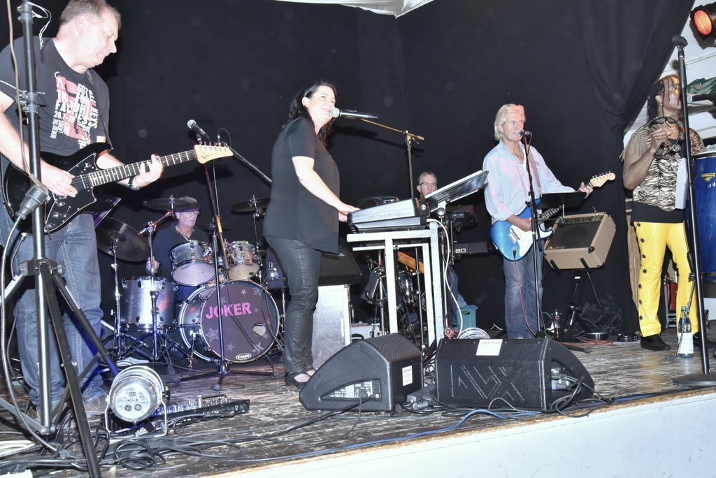 Auch „Stand by me“ vom unvergessenen Ben E. King oder „My Girl“ und „Papa was a Rolling Stone“ von den „The Temptation“ kamen beim Publikum super an. Zum Schluss wurde noch einmal an den großen Weltstar „Prince“ mit „Purple rain“ erinnert. Joker, das sind Nicole Göbel (Keyboard und Gesang); Larry London (Gesang & Percussions); Jerry (Lead Vocals & Bass); Wolfgang Boike (Rhythm Guitar & Backing Vocals); Michael Roesner (Keyboards & Backing Vocals) Jürgen Hettrich (Gitarre) und Reiner Lendel (Drums). Sieben hervorragende Musiker mit fast 40 Jahren Bühnenerfahrung. Denn im kommenden Jahr feiert Joker sein 40-jähriges Bühnenjubiläum, darauf kann eine Band Stolz sein.