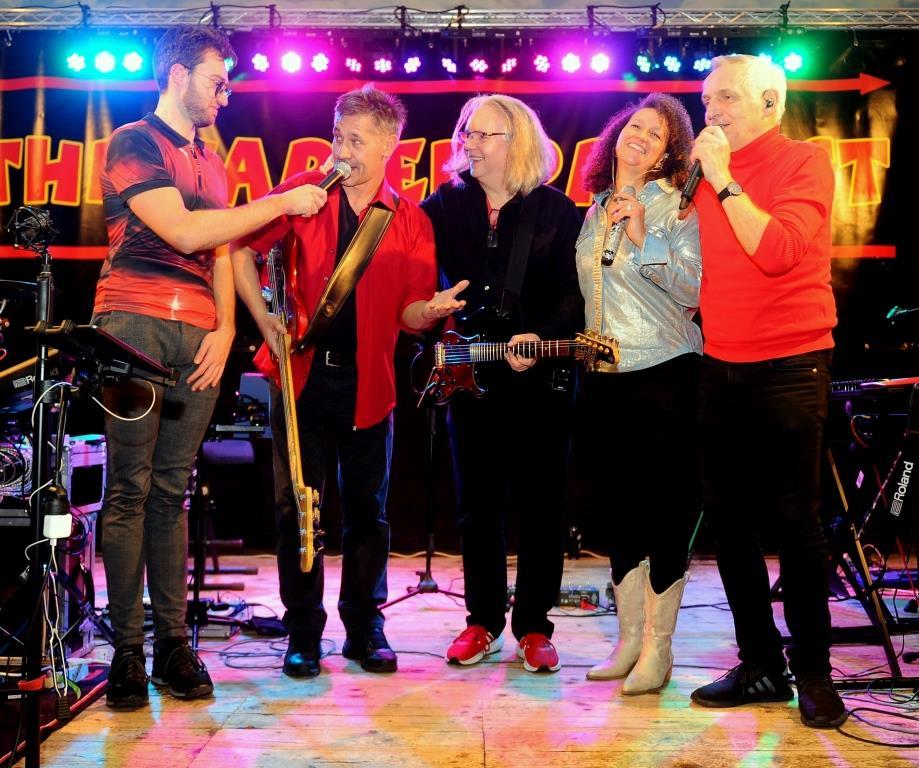 Die Band präsentierte sich in Bestform. Mit Karen, Christian und Robin standen gleich drei starke Stimmen auf der Bühne, jede mit ganz eigener Ausstrahlung und beeindruckender Präsenz. Das vielseitige Repertoire ließ keine Wünsche offen: Deutsche Klassiker wie „Er gehört zu mir“, Peter Maffays „Sonne in der Nacht“ oder „Griechischer Wein“ von Udo Jürgens luden zum Mitsingen ein.