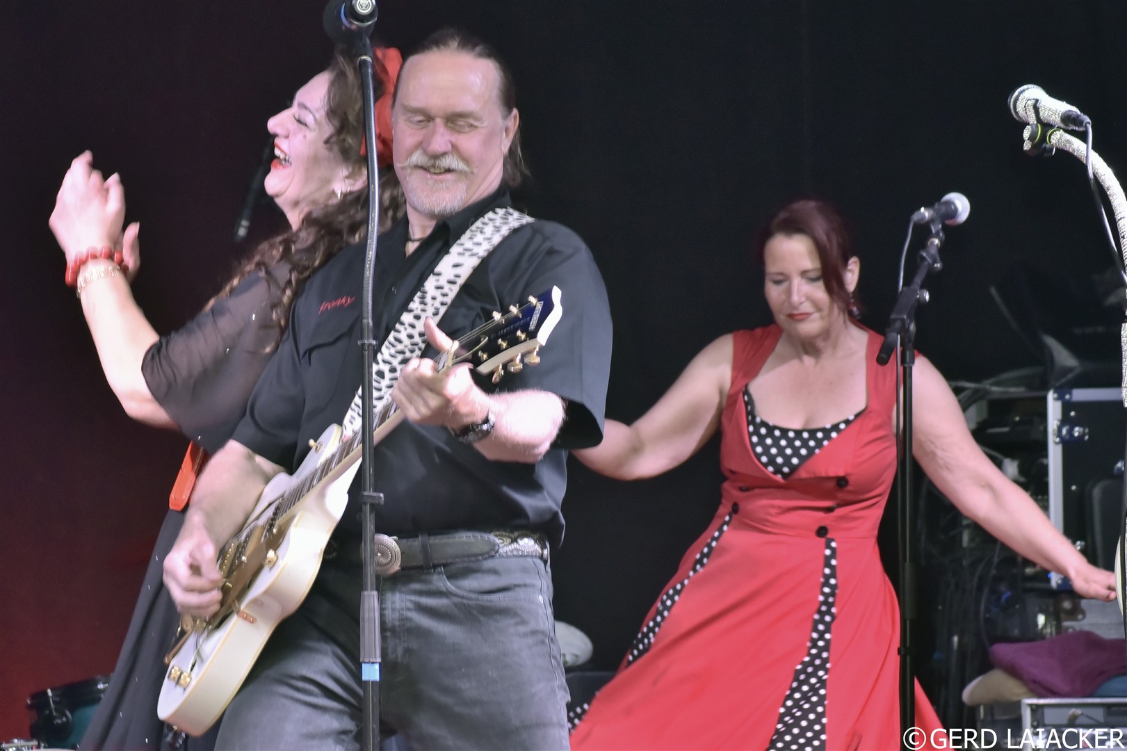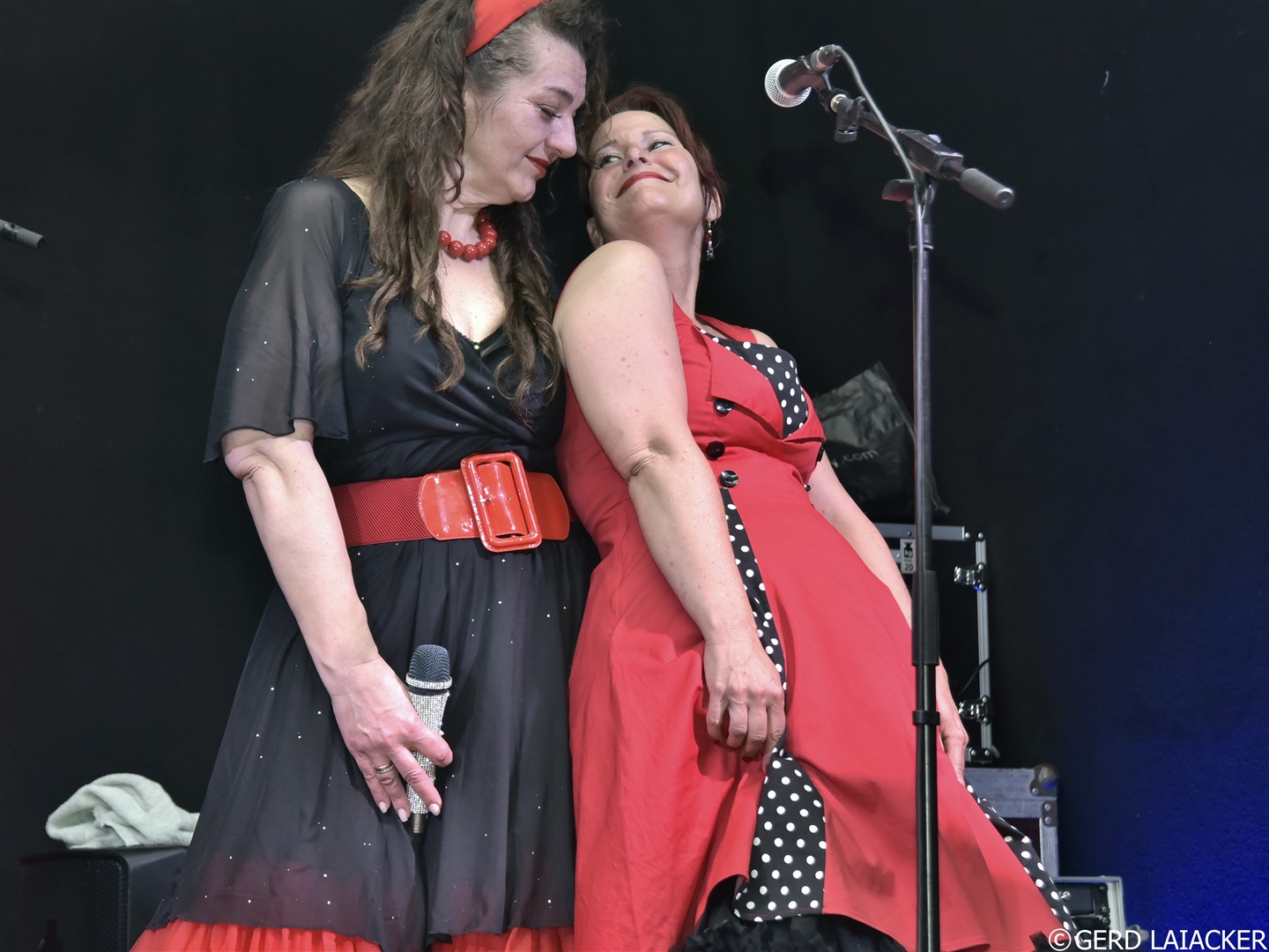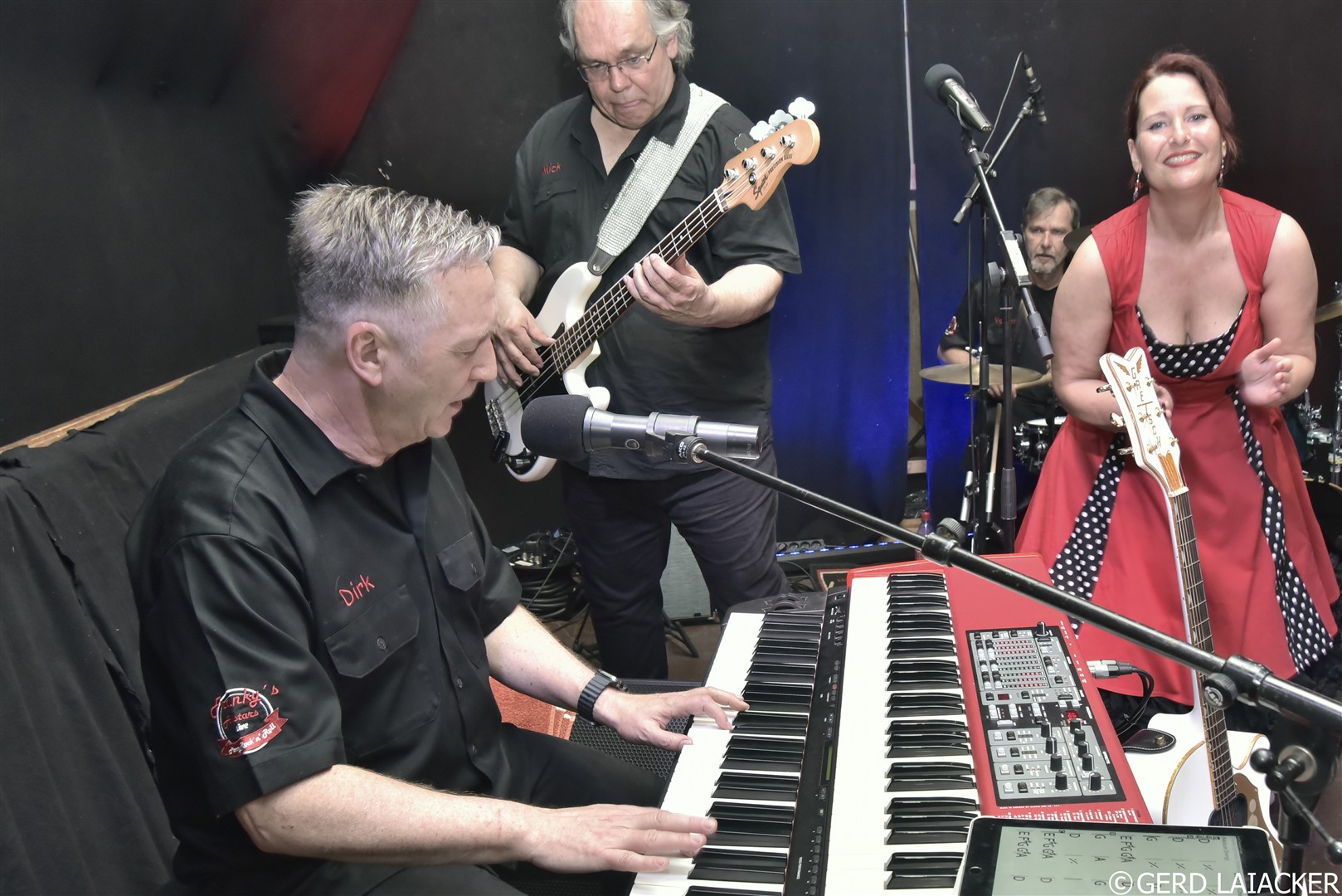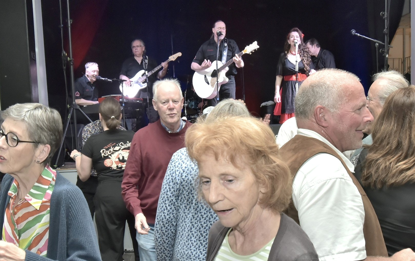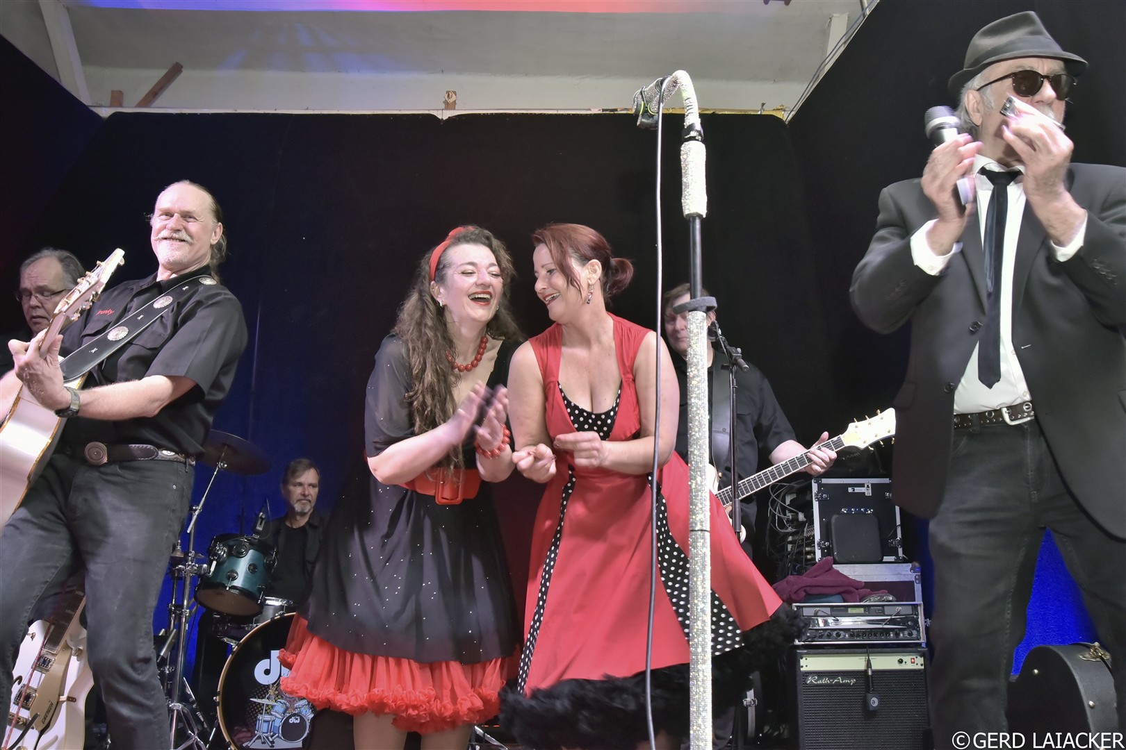 Die Band begeisterte mit ihrer vielseitigen Setliste mit tollen Evergreens. Die Sängerinnen Branka und Britta versetzten die Gäste mit ihrem an die 50er und 60er Jahre angelehnten Stil in die Vergangenheit und brachten Songs wie „Schöner fremder Mann“ auf unverwechselbare Weise auf die Bühne. Spätestens beim Schmuse-Hit „Blue Hotel“, von Franky gesungen, waren die Herzen der Zuhörer erobert – ganz besonders für Monis, die diesen Song liebt.