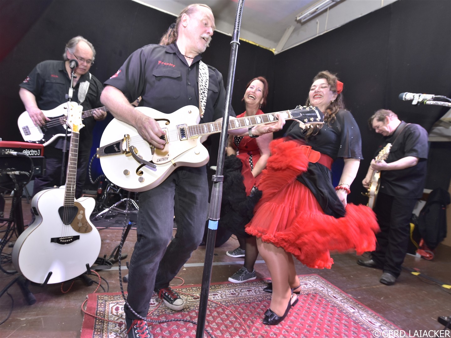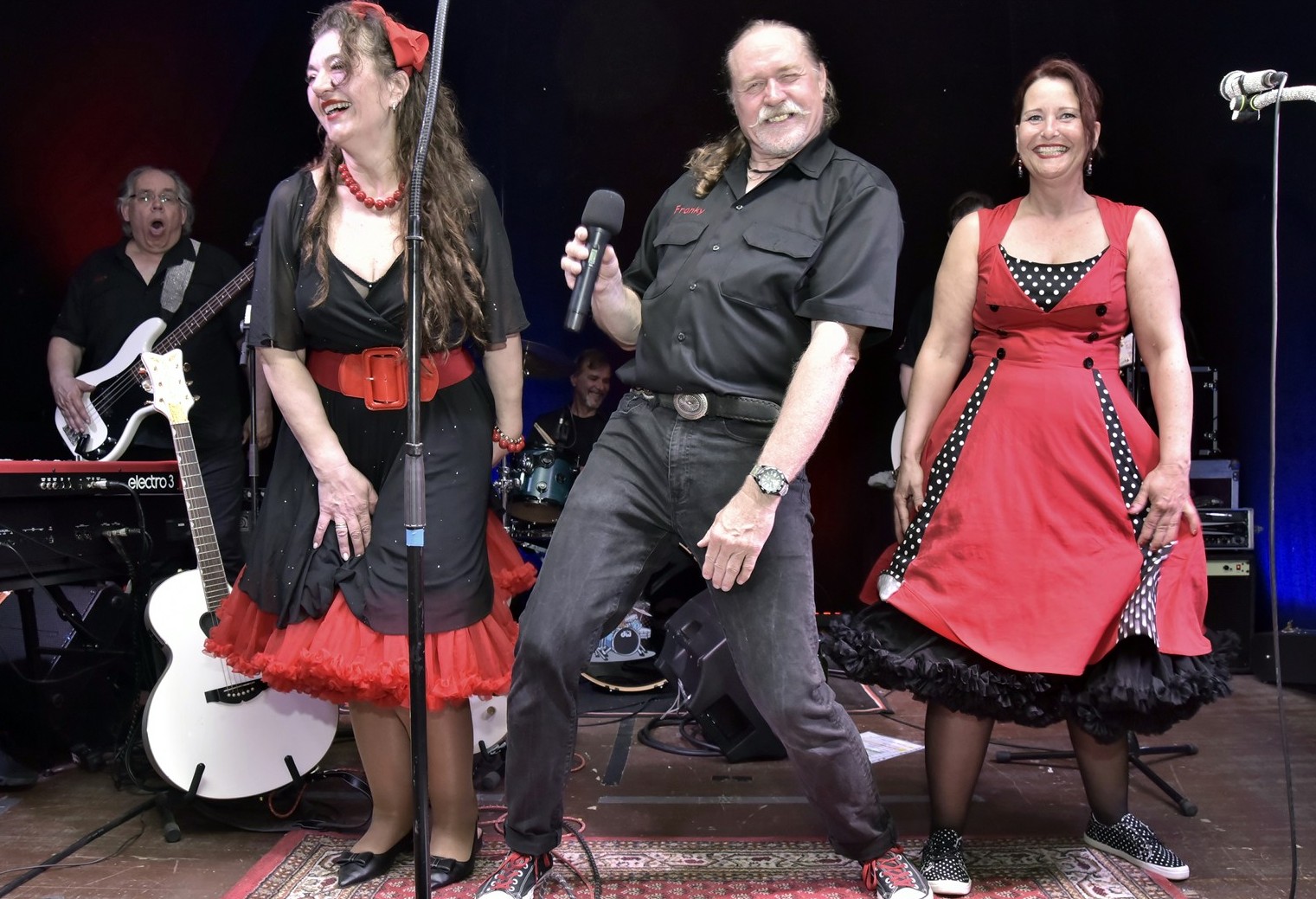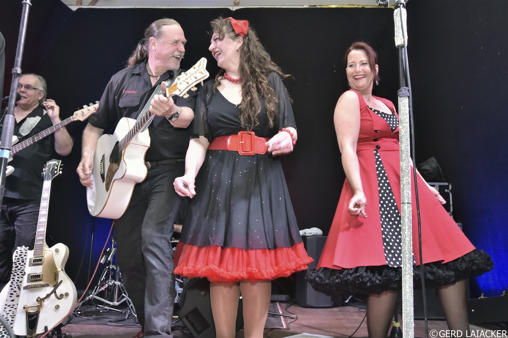 Mit Klassikern wie „That’s Alright Mama“ und „See You Later Alligator“ kamen auch die Elvis-Freunde voll auf ihre Kosten. Der Abend war eine musikalische Reise für jeden Geschmack – von Rock ’n’ Roll bis zu Oldies. Schließlich verabschiedeten sich „Franky’s Allstars“ mit den wunderschönen Songs „Stand By Me“ und „Be My Baby“ von ihrem Publikum. Natürlich gab es noch eine Zugabe und nach „Tell me What I Say“ war das Publikum so was von begeistert und alle bedankten sich mit frenetischem Applaus bei Franky, Branka, Britta, Mike, Dirk, Volker und bei Mick – eben den „Allstars“.