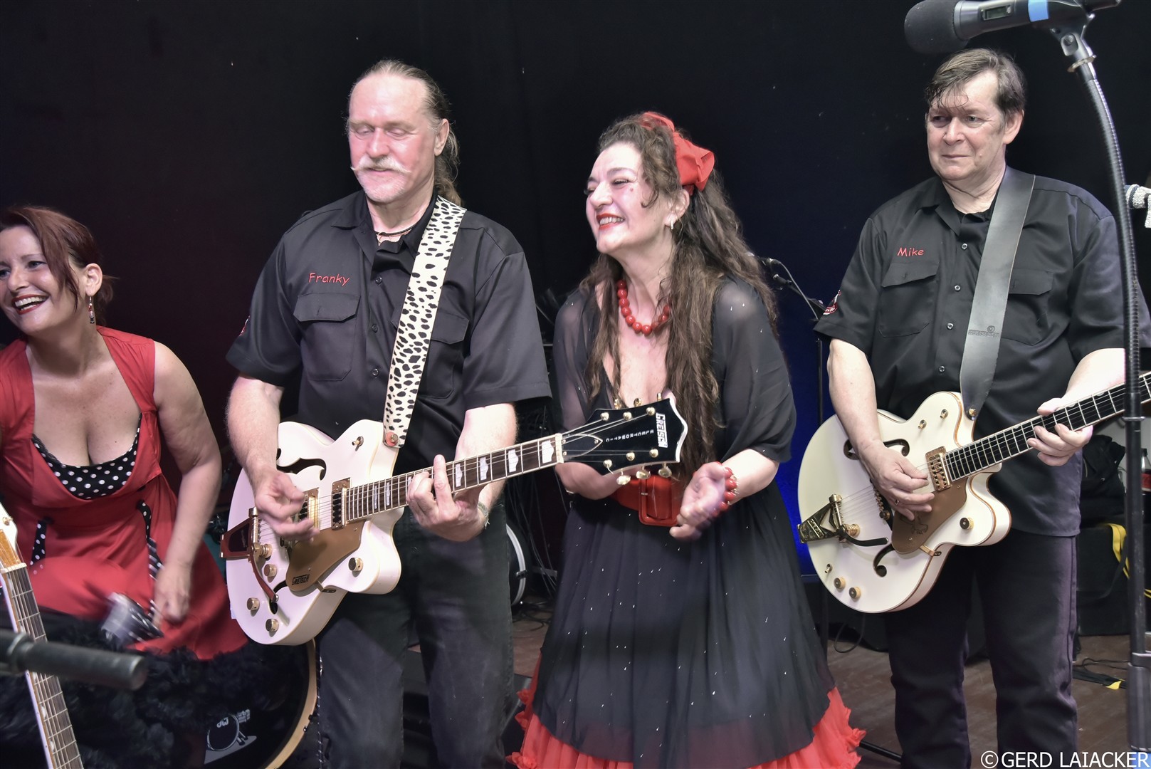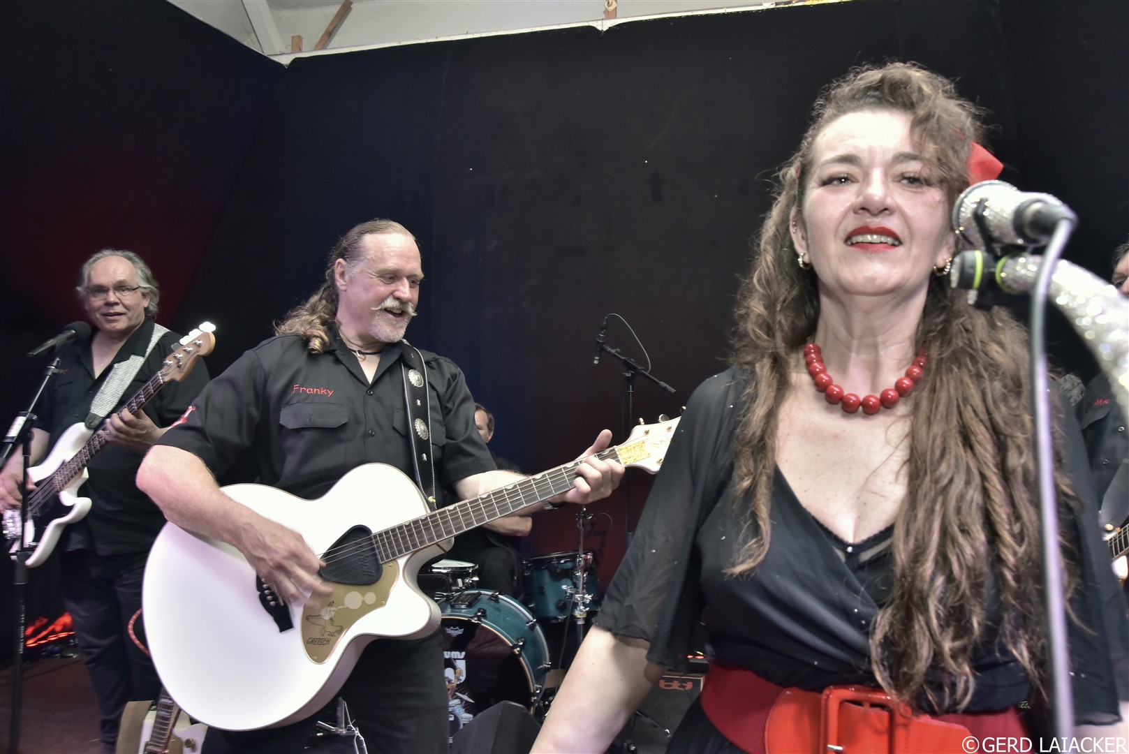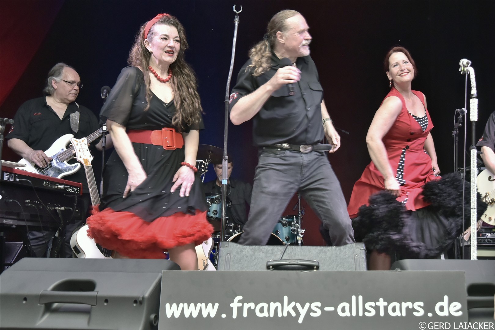 Mit Klassikern wie „That’s Alright Mama“ und „See You Later Alligator“ kamen auch die Elvis-Freunde voll auf ihre Kosten. Der Abend war eine musikalische Reise für jeden Geschmack – von Rock ’n’ Roll bis zu Oldies. Schließlich verabschiedeten sich „Franky’s Allstars“ mit den wunderschönen Songs „Stand By Me“ und „Be My Baby“ von ihrem Publikum. Natürlich gab es noch eine Zugabe und nach „Tell me What I Say“ war das Publikum so was von begeistert und alle bedankten sich mit frenetischem Applaus bei Franky, Branka, Britta, Mike, Dirk, Volker und bei Mick – eben den „Allstars“.