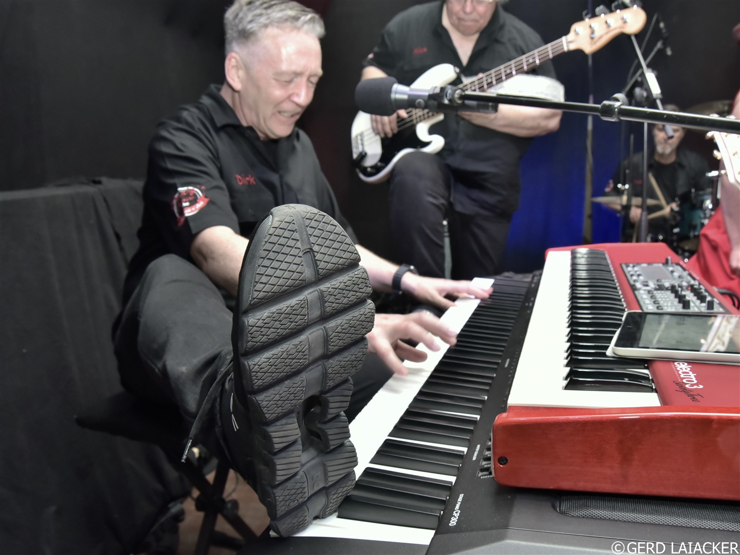 Ein emotionaler Höhepunkt des Abends war die Danksagung des Vorstands an Mandy und ihr Team, die uns über viele Jahre hinweg mit ihrer großartigen Bewirtung begleitet haben. Die Überraschungsgeschenke und der Applaus der Gäste waren wohlverdient. Doch die Überraschungen hörten hier nicht auf. Rolf Ackermann vom Bluestaxi begeisterte die Band und das Publikum mit einem Harp-Solo, das sich perfekt ins Gesamtbild des Abends einfügte.