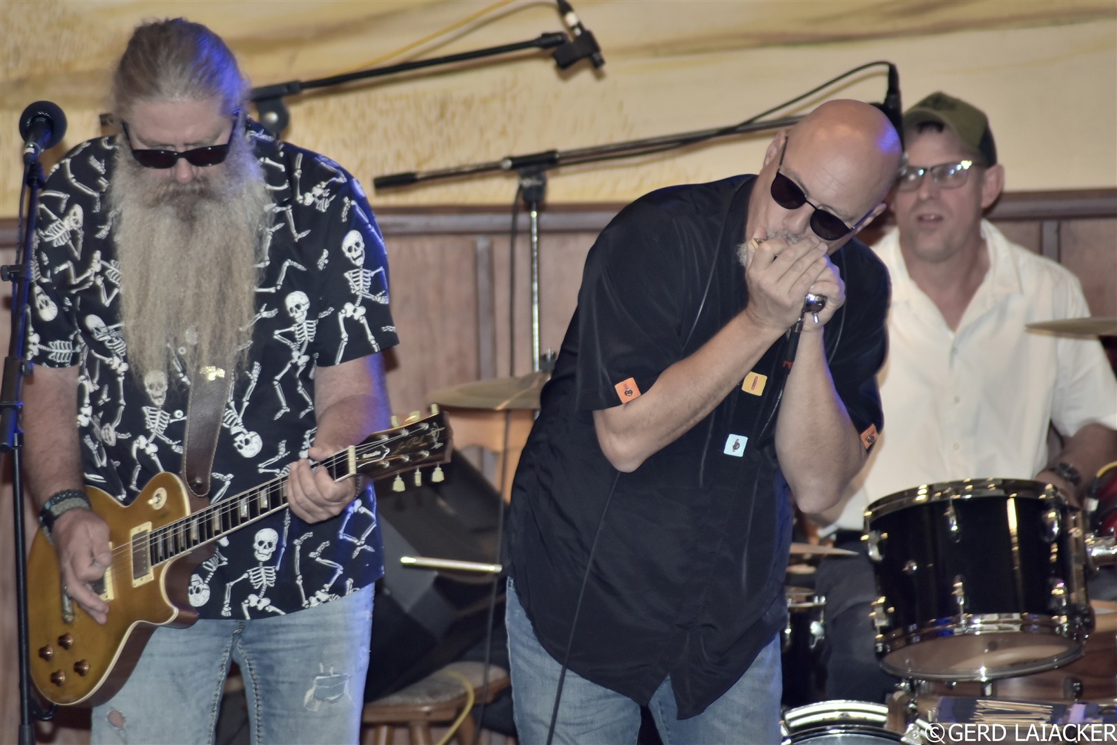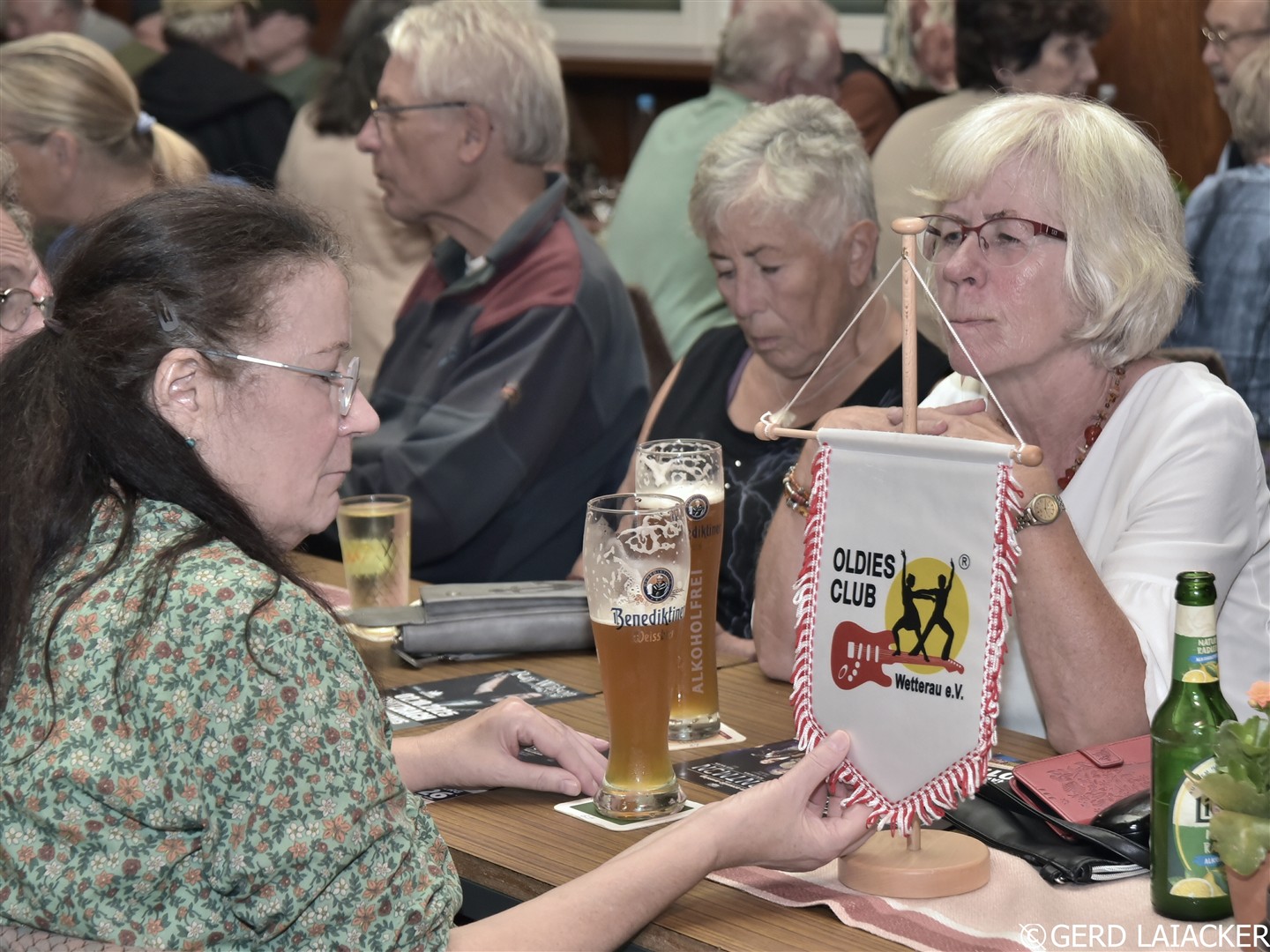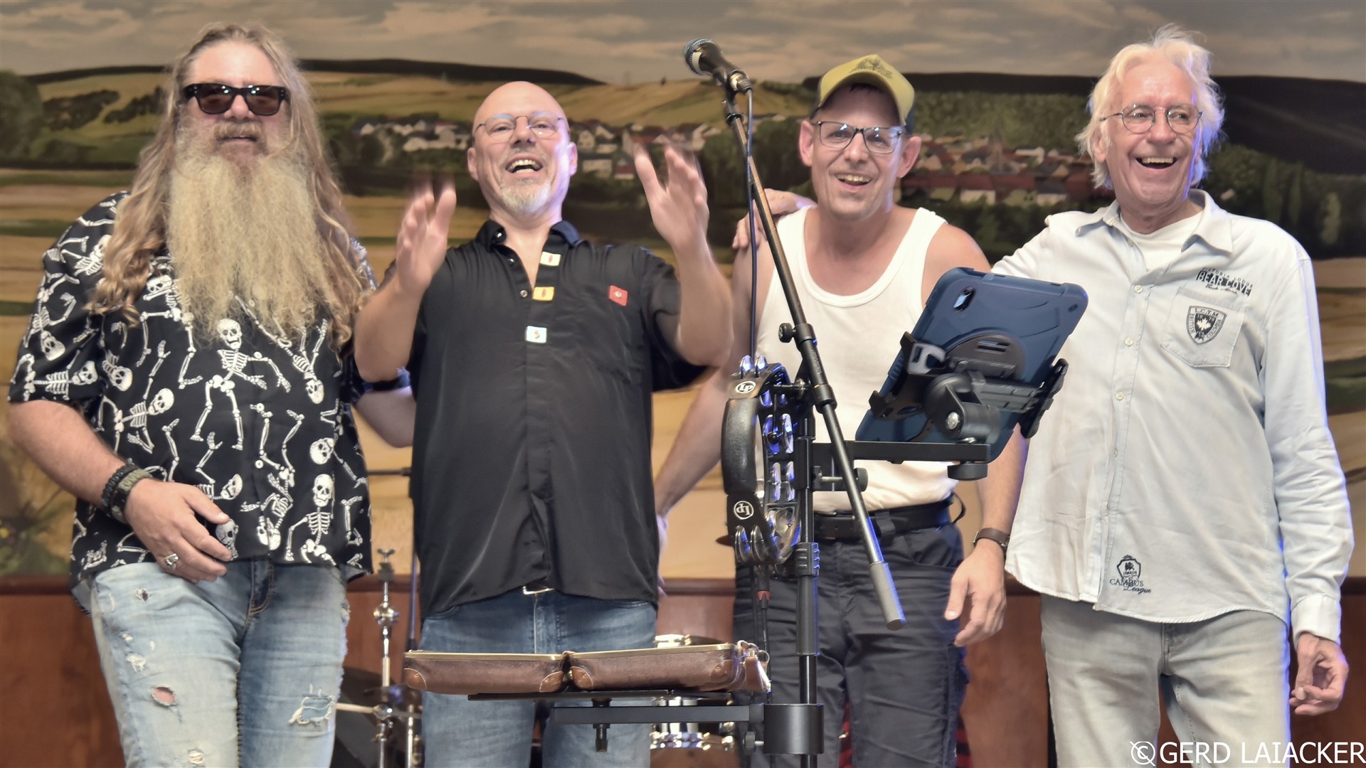 Die vier Musiker – Olaf Stellberger am Gesang und der Mundharmonika, Bernd Ritter an der Gitarre, Björn Dobner am Schlagzeug und Jürgen Walter am Bass – präsentierten Songs von Rocklegenden wie Eric Clapton mit „I Shot the Sheriff“ und „Lay Down Sally“ mit einer Hingabe, die das Publikum spürbar berührte. Der Applaus war laut, frenetisch und verdient. In der Pause wurde Brigitte Melzer, das Geburtstagskind des Abends, mit einer Flasche OCW Schampus überrascht – ein liebevoller Moment, der die familiäre Atmosphäre des Abends unterstrich. Danach ging es musikalisch weiter mit „Proud Mary“ von CCR und dem legendären „On the Road Again“ von Canned Heat, einer Band, die wie kaum eine andere für den Bluesrock der 60er und 70er Jahre steht. Olaf Stellberger brillierte als Frontmann und Bluesharper, unter anderem mit „Love Like a Man“, und zeigte, wie viel Seele in einer Mundharmonika stecken kann.