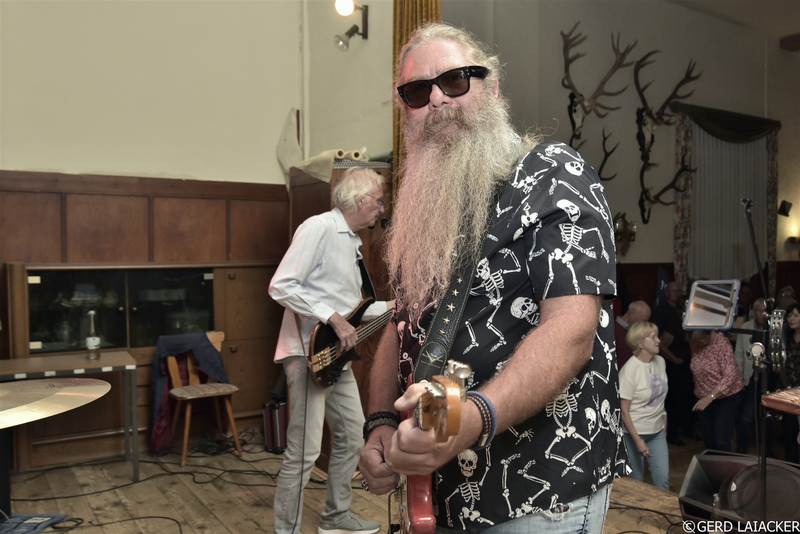Doch „The Caseys“ hatten nicht nur internationale Klassiker im Gepäck – auch deutsche Songs wie „Skandal im Sperrbezirk“ und „Ein Kompliment“ von den Sportfreunden Stiller wurden mit Begeisterung aufgenommen und lautstark mitgesungen. Olaf Stellberger präsentierte zudem eigene Songs wie „Bist Du dann bei mir“ und „Treu“, die das Publikum begeisterte. Jeder Musiker brachte seine eigene Note und Erfahrung ein, was dem Abend eine besondere musikalische Vielfalt verlieh. Zum Abschluss erklangen „Like a Hurricane“ von Neil Young und „The Passenger“ von Iggy Pop – ein würdiger Ausklang, bei dem die Band gemeinsam mit dem Publikum den Refrain sang und die letzten „la la la lalalalal“ durch den Saal hallten.