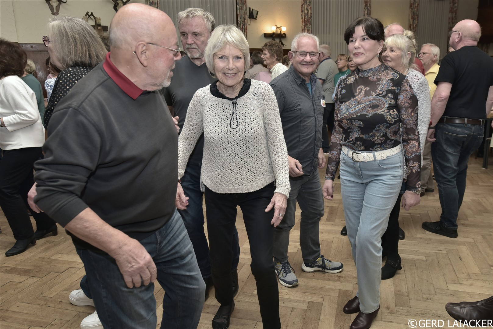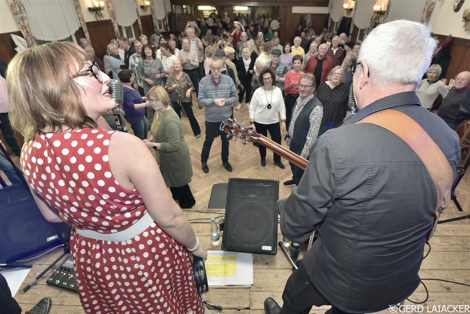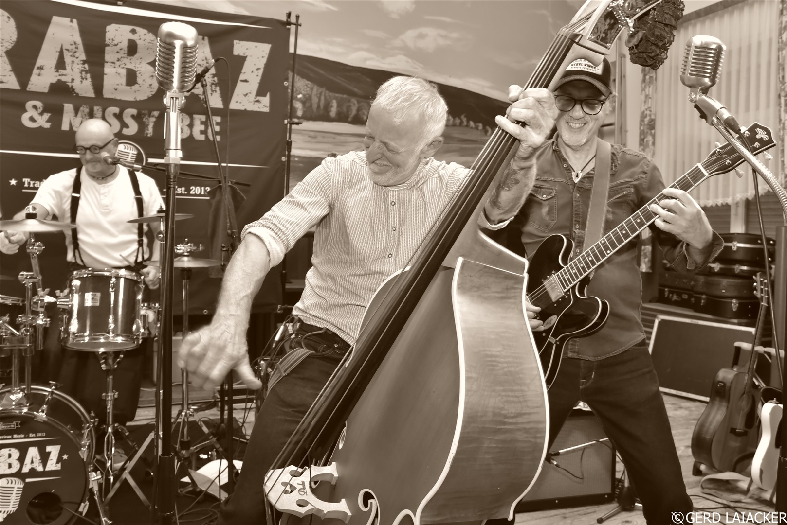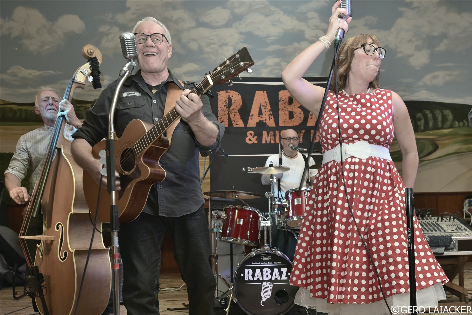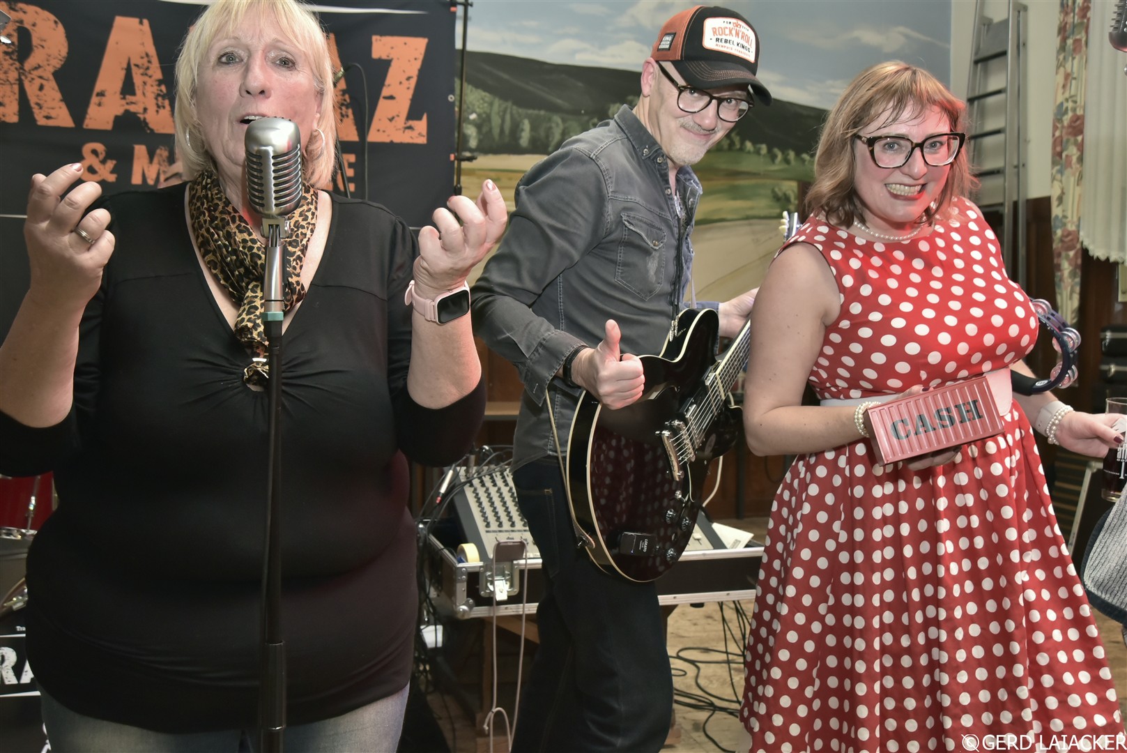Nachdem Moni die Gäste herzlich begrüßte und einen schwungvollen Abend versprach, füllte sich die Tanzfläche schon bei den ersten Songs „Good Rocking Tonight“ von Roy Brown und „Get Rhythm“ von Johnny Cash. Die Spielfreude und Leidenschaft der Musiker waren deutlich spürbar und übertrugen sich sofort auf das Publikum, die begeistert mitsangen und mittanzten. Missy Bee überzeugte nicht nur mit ihrer Stimme, sondern auch mit ihrem stilechten Outfit im 50er-Jahre-Look, das perfekt zum Repertoire passte. Gemeinsam mit Ralf Schneider an Vocals, Harmonica, Guitar und Mandolin, Achim Karn am Kontrabass, Manfred Bürner an Vocals und Guitar sowie Joachim Kreher an Vocals, Drums und Percussion bot die Band ein harmonisches Zusammenspiel, das vom Publikum mit großem Applaus gefeiert wurde.