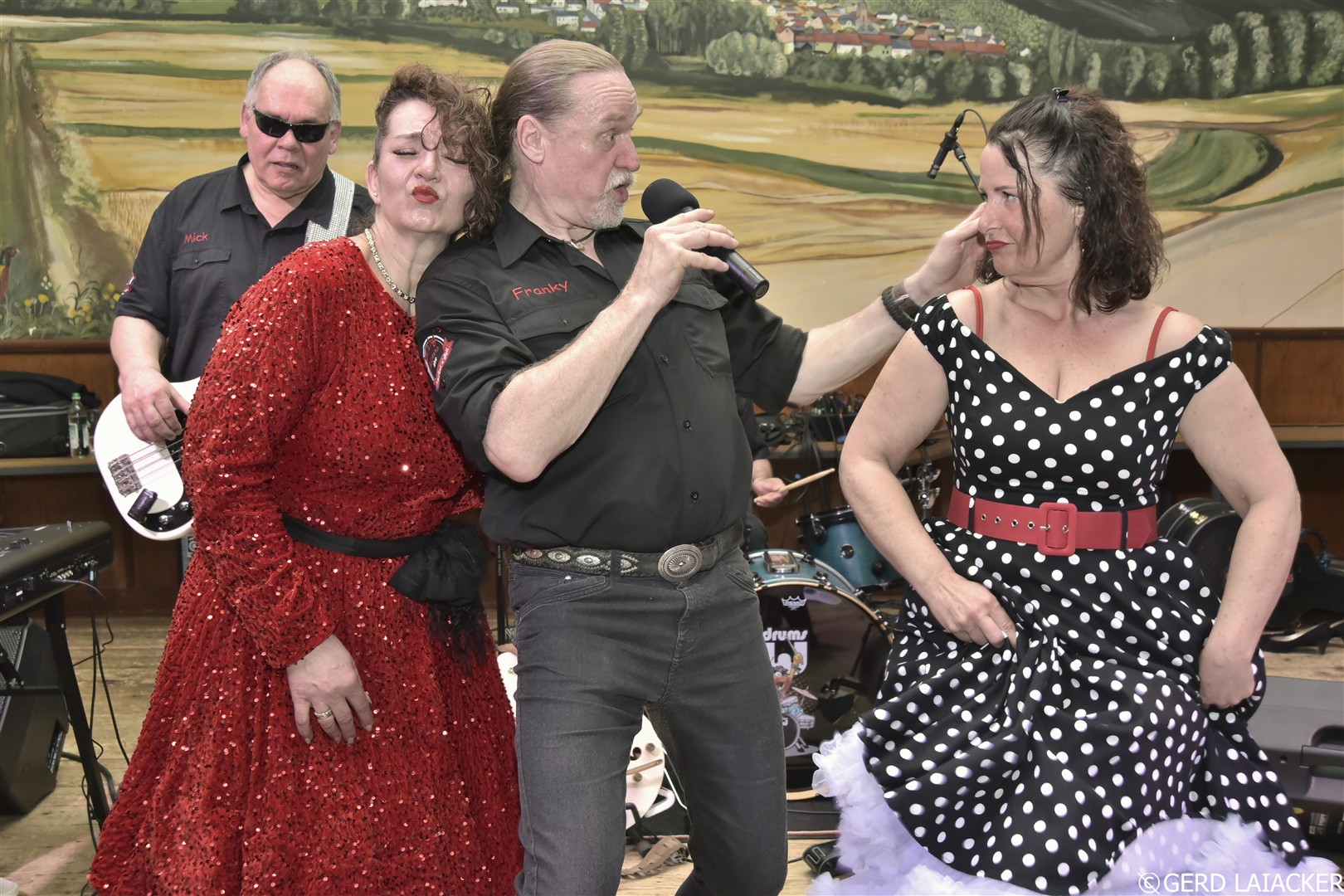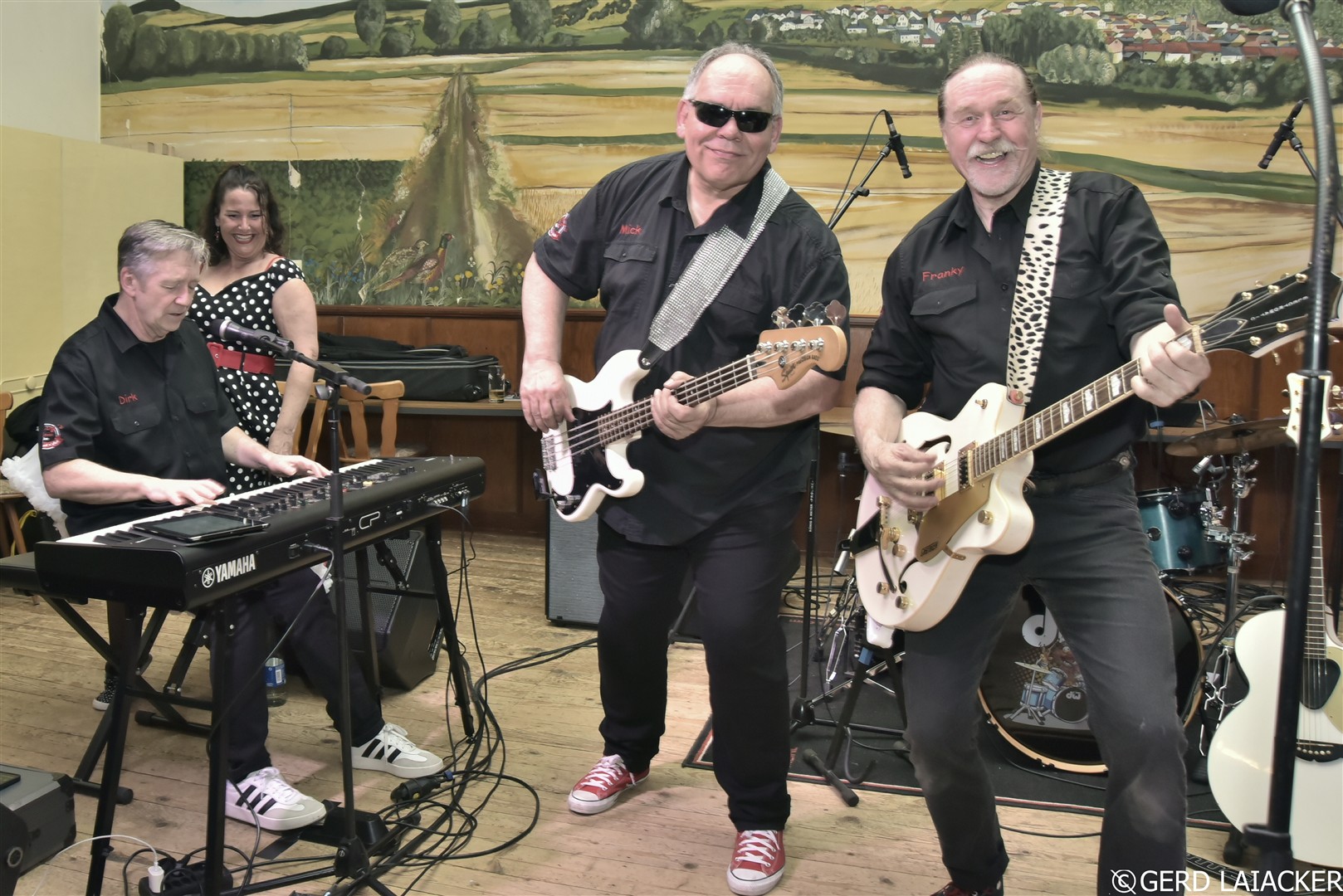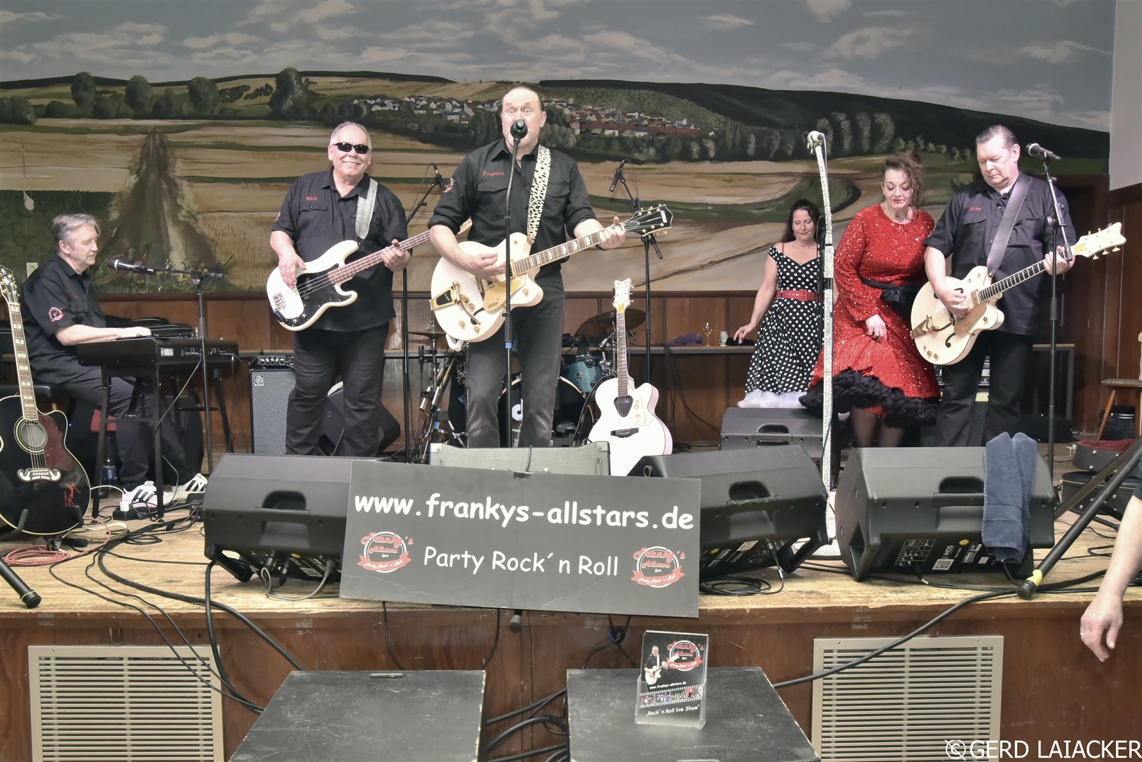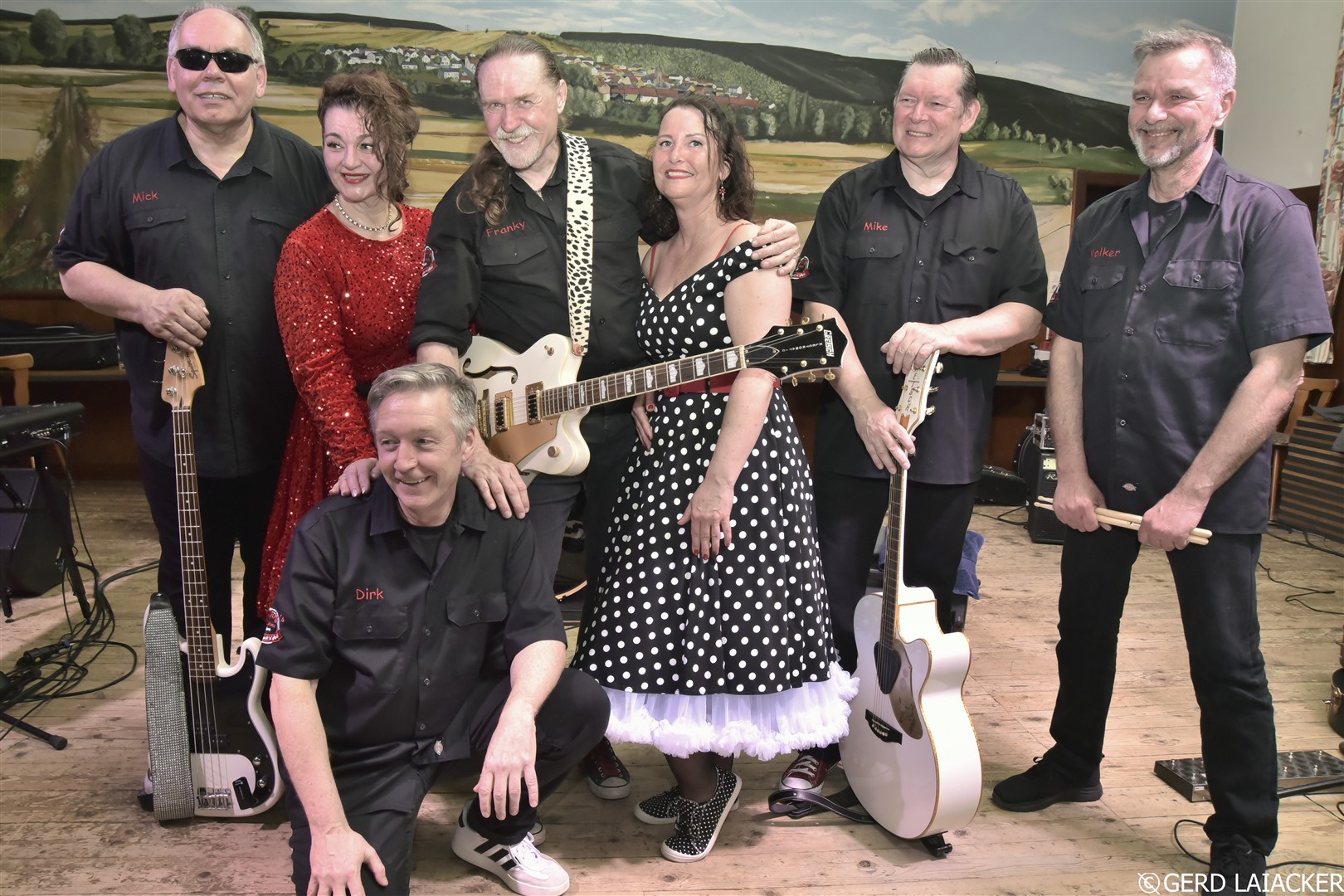 Wie gewohnt eröffnete Moni den Clubabend mit einer herzlichen Begrüßung und dem Versprechen eines Abends voller Rock’n’Roll – ein Versprechen, das Franky’s Allstars vom ersten Ton an einlösten. Bereits bei „Let’s Twist Again“ stürmten die Gäste die Tanzfläche. Mit „Sexy Hexi“ und einem schwungvollen Rock’n’Roll‑Medley war die Stimmung endgültig auf dem Höhepunkt. Es wurde getanzt und getwistet, was das Zeug hielt. Die Band überzeugte mit einer vielseitigen Setliste voller Evergreens. Die Sängerinnen Branka und Britta entführten das Publikum mit ihrem an die 50er und 60er Jahre angelehnten Stil in die Vergangenheit und präsentierten Songs wie „Schöner fremder Mann“ auf unverwechselbare Weise. Spätestens beim Schmusesong „Blue Hotel“, gefühlvoll gesungen von Franky, waren die Herzen der Zuhörer erobert – besonders Monis, die diesen Titel ganz besonders liebt.