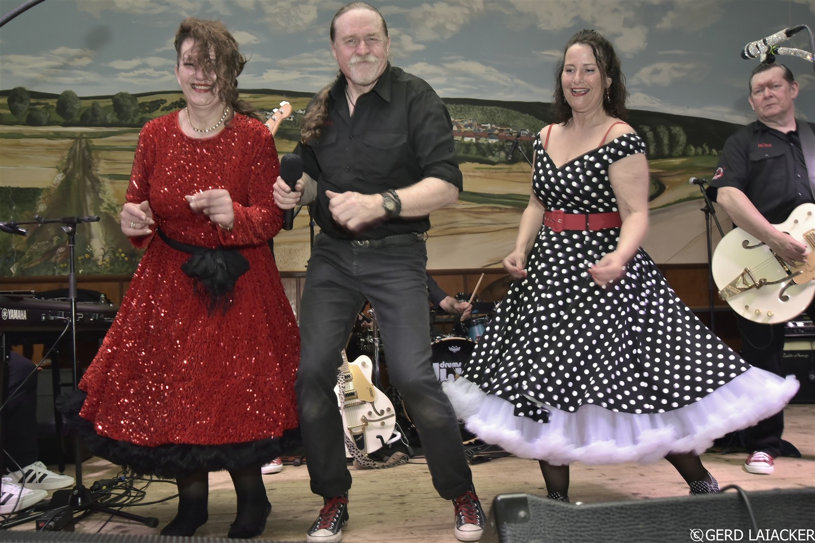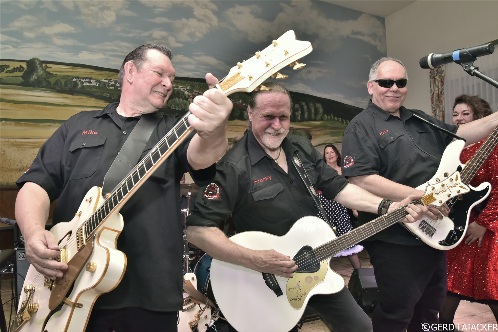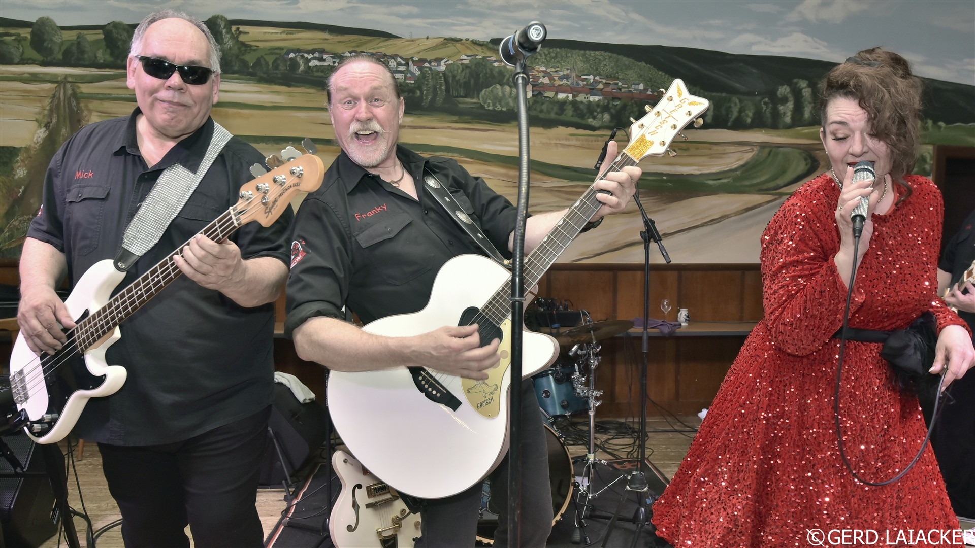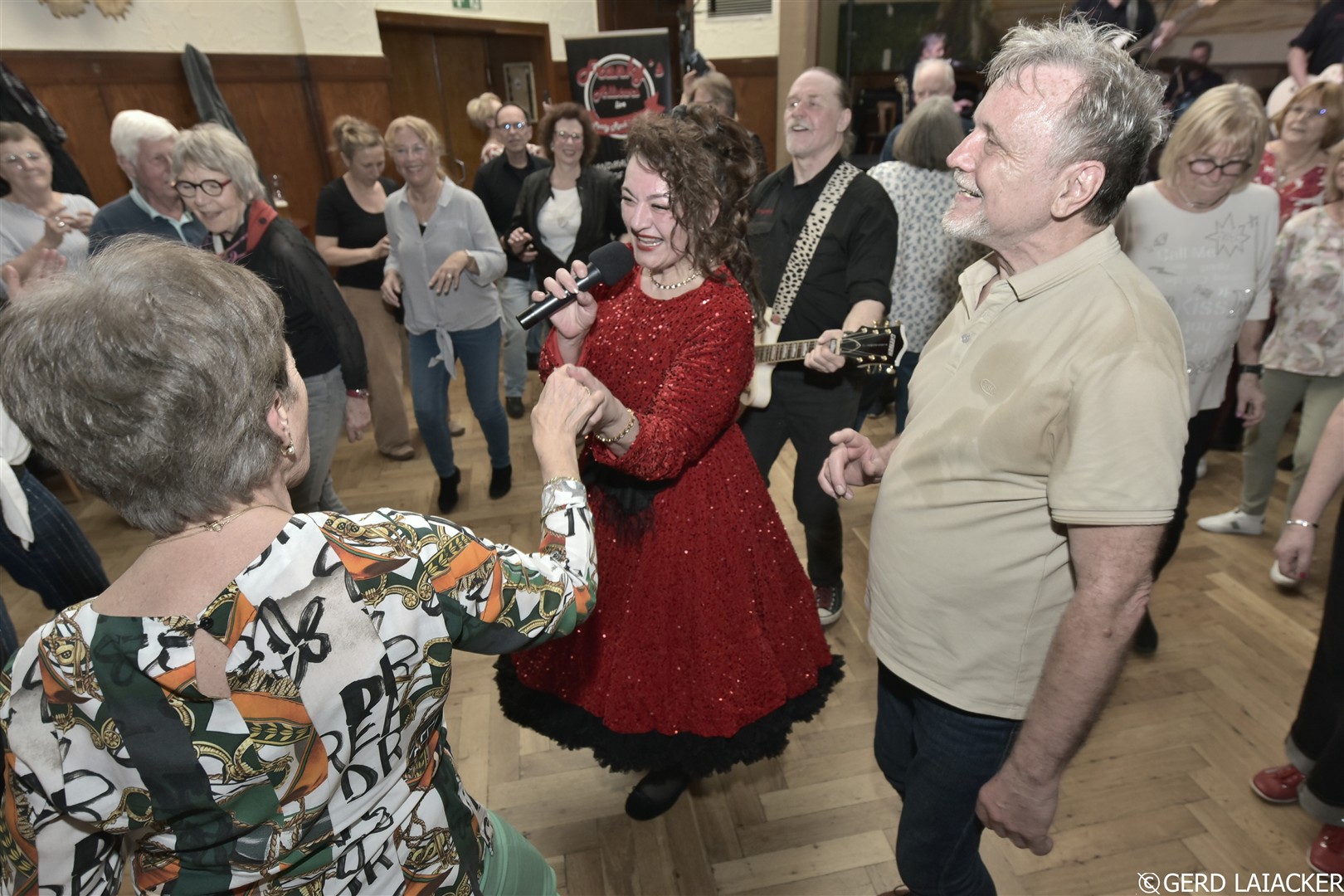Wie gewohnt eröffnete Moni den Clubabend mit einer herzlichen Begrüßung und dem Versprechen eines Abends voller Rock’n’Roll – ein Versprechen, das Franky’s Allstars vom ersten Ton an einlösten. Bereits bei „Let’s Twist Again“ stürmten die Gäste die Tanzfläche. Mit „Sexy Hexi“ und einem schwungvollen Rock’n’Roll‑Medley war die Stimmung endgültig auf dem Höhepunkt. Es wurde getanzt und getwistet, was das Zeug hielt. Die Band überzeugte mit einer vielseitigen Setliste voller Evergreens. Die Sängerinnen Branka und Britta entführten das Publikum mit ihrem an die 50er und 60er Jahre angelehnten Stil in die Vergangenheit und präsentierten Songs wie „Schöner fremder Mann“ auf unverwechselbare Weise. Spätestens beim Schmusesong „Blue Hotel“, gefühlvoll gesungen von Franky, waren die Herzen der Zuhörer erobert – besonders Monis, die diesen Titel ganz besonders liebt.