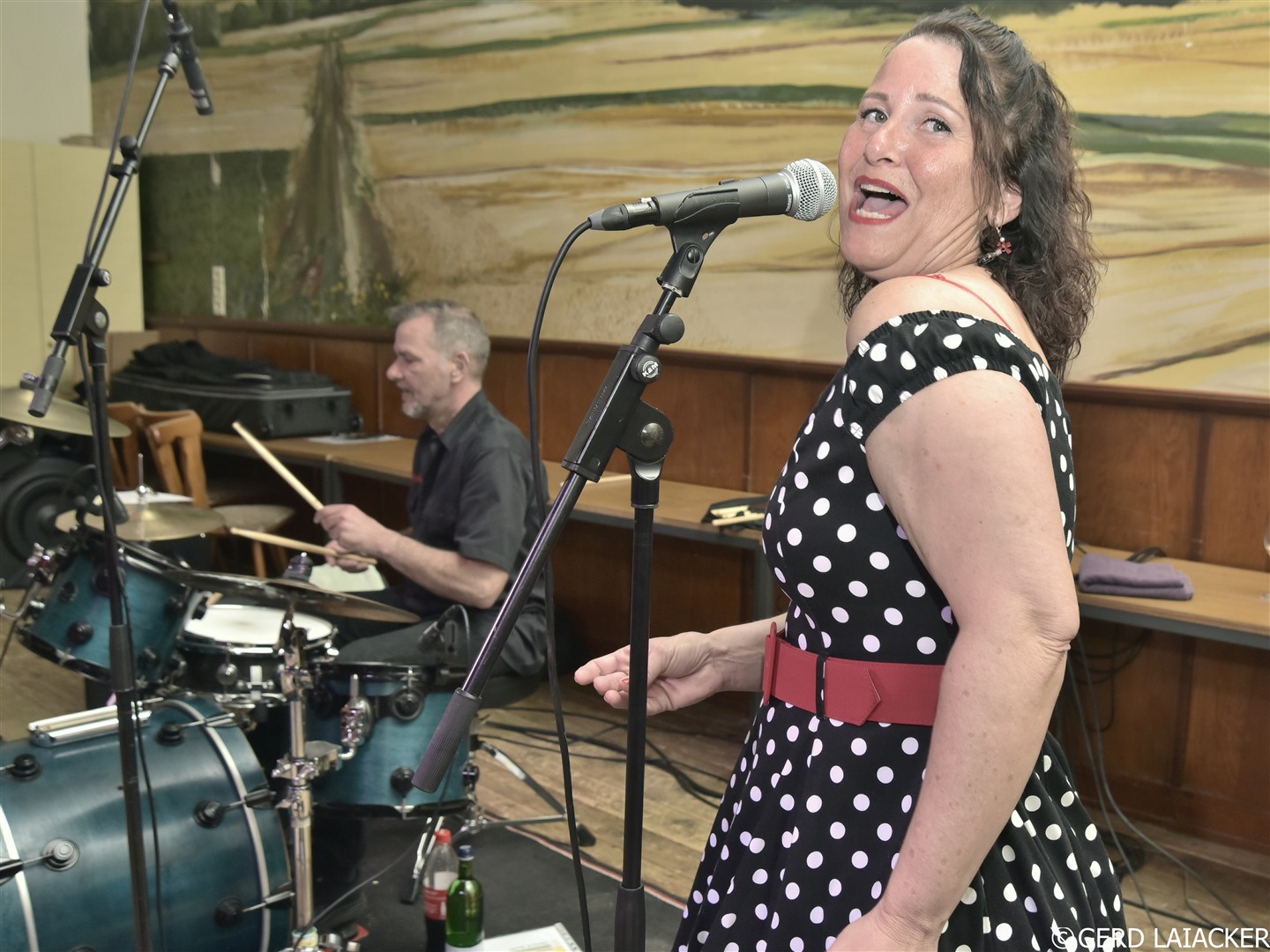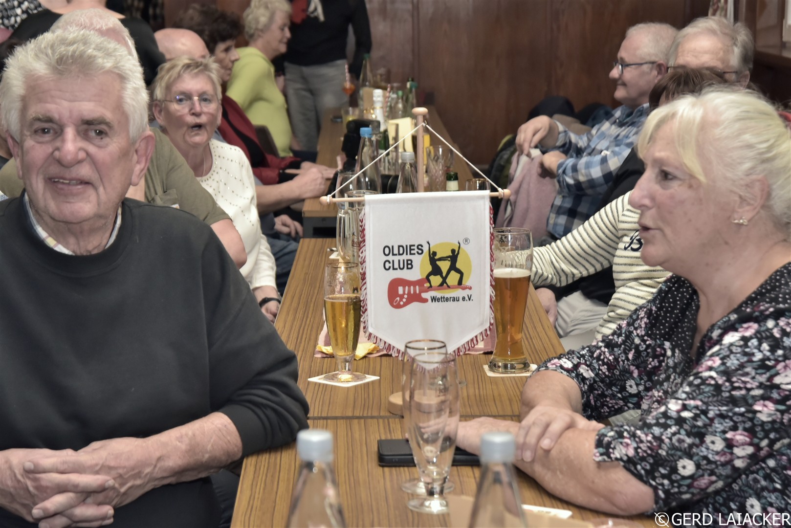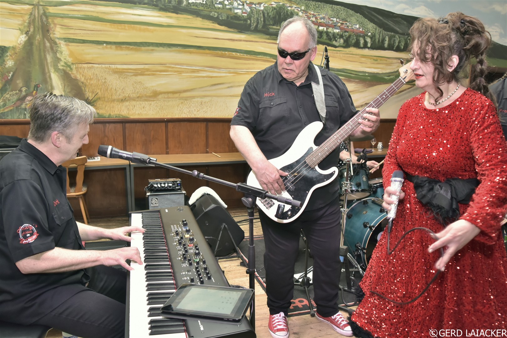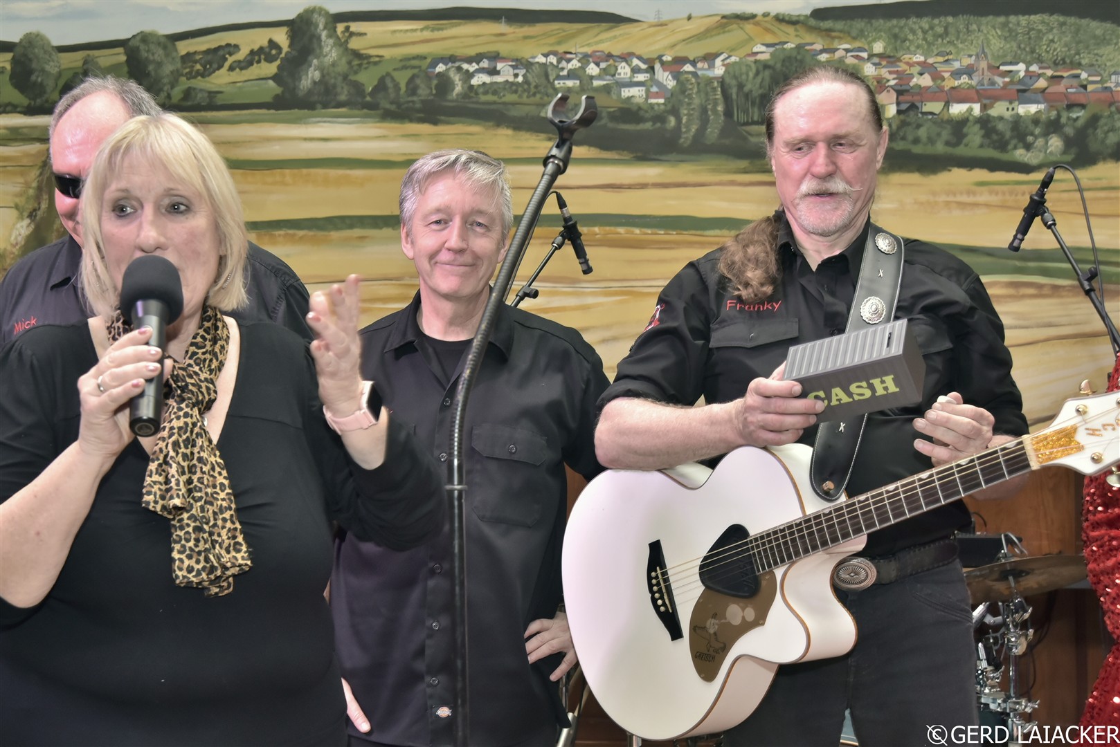 Wie gewohnt eröffnete Moni den Clubabend mit einer herzlichen Begrüßung und dem Versprechen eines Abends voller Rock’n’Roll – ein Versprechen, das Franky’s Allstars vom ersten Ton an einlösten. Bereits bei „Let’s Twist Again“ stürmten die Gäste die Tanzfläche. Mit „Sexy Hexi“ und einem schwungvollen Rock’n’Roll‑Medley war die Stimmung endgültig auf dem Höhepunkt. Es wurde getanzt und getwistet, was das Zeug hielt. Die Band überzeugte mit einer vielseitigen Setliste voller Evergreens. Die Sängerinnen Branka und Britta entführten das Publikum mit ihrem an die 50er und 60er Jahre angelehnten Stil in die Vergangenheit und präsentierten Songs wie „Schöner fremder Mann“ auf unverwechselbare Weise. Spätestens beim Schmusesong „Blue Hotel“, gefühlvoll gesungen von Franky, waren die Herzen der Zuhörer erobert – besonders Monis, die diesen Titel ganz besonders liebt.