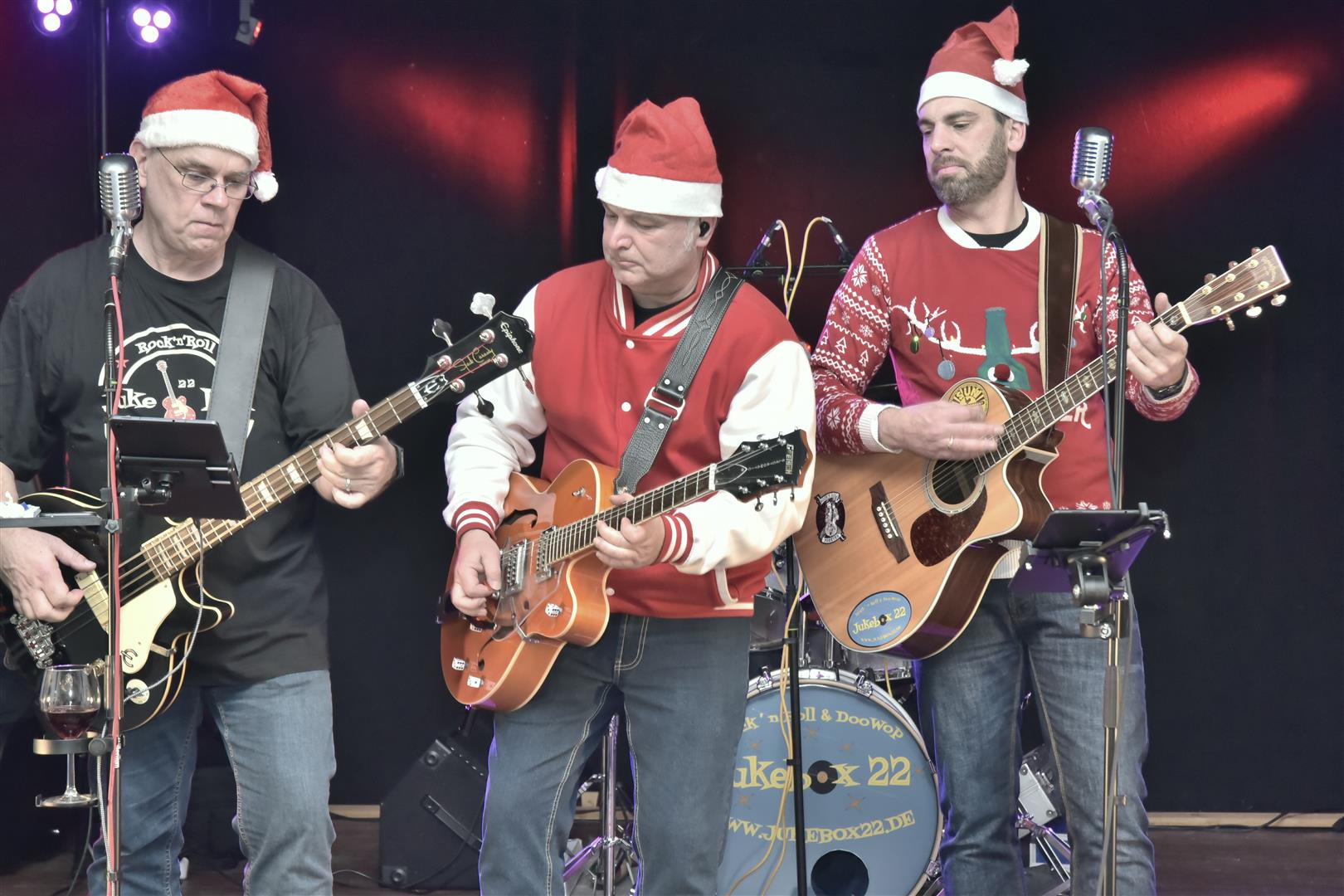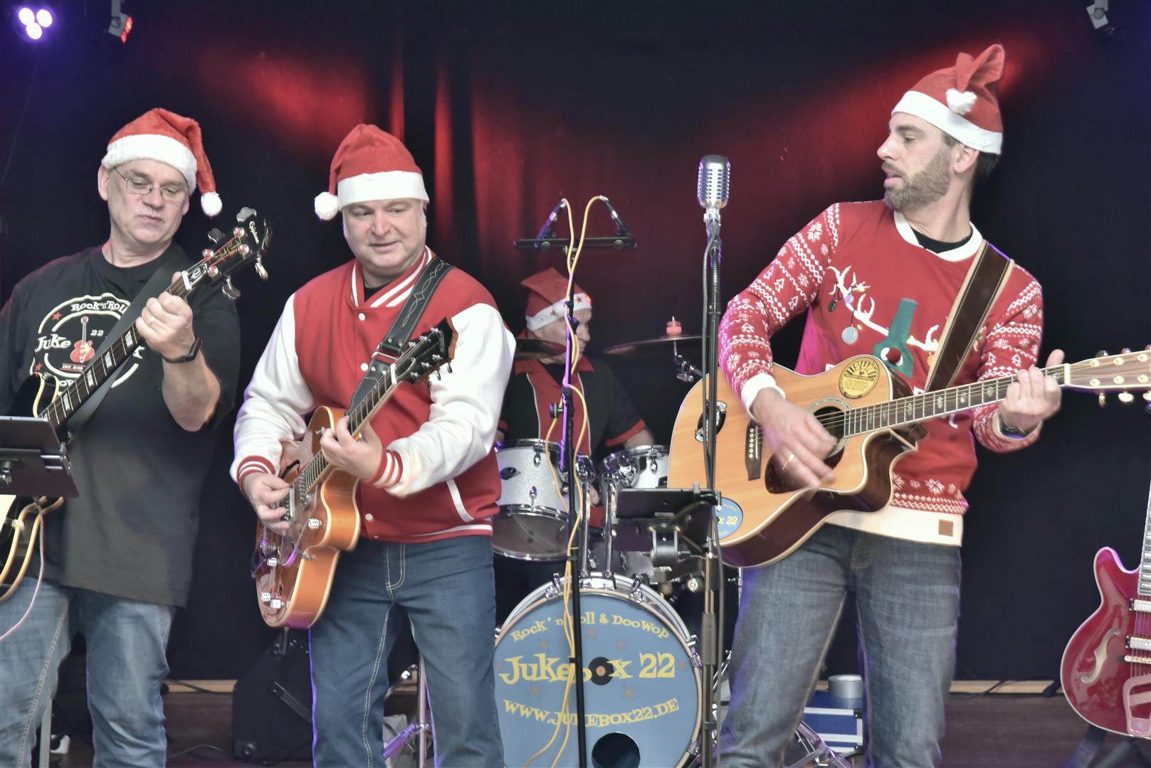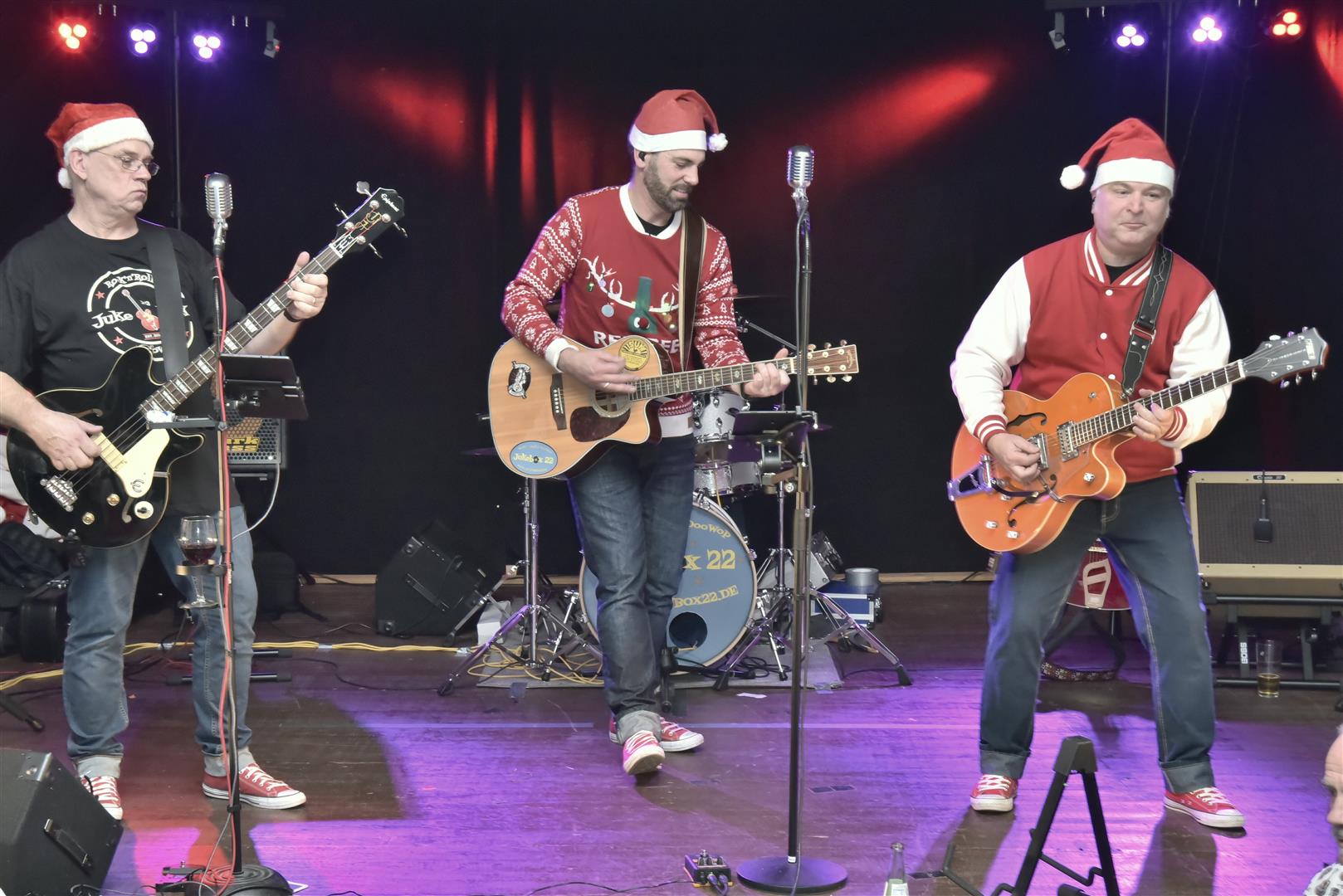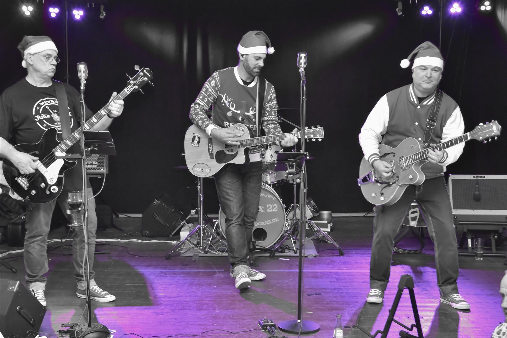 Leider neigte sich der Abend so langsam dem Ende entgegen und mit dem Weihnachtssong „Run Rudolph Run“ verabschiedete sich die Band. Es war eine gelungene Überraschung als die Band diesen Song mit Weihnachtsmützen vortrug. Das Publikum bedankte sich mit riesigem Applaus.