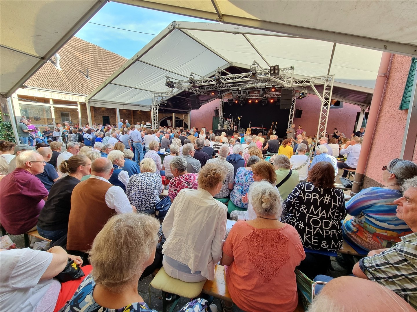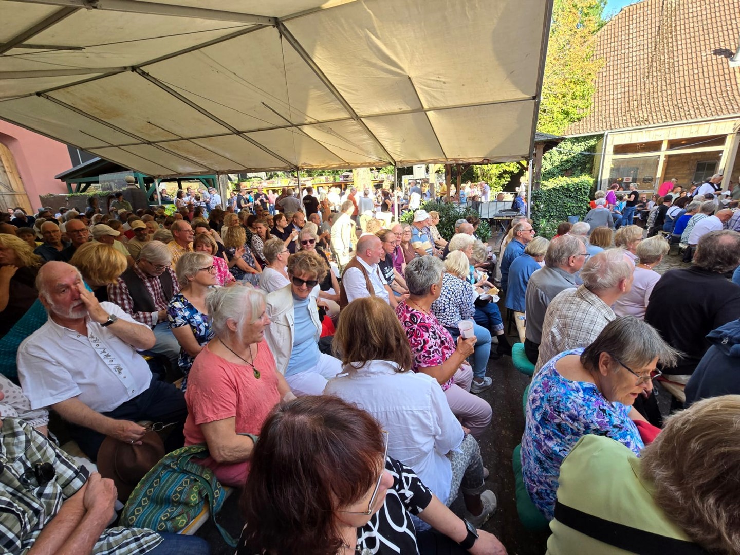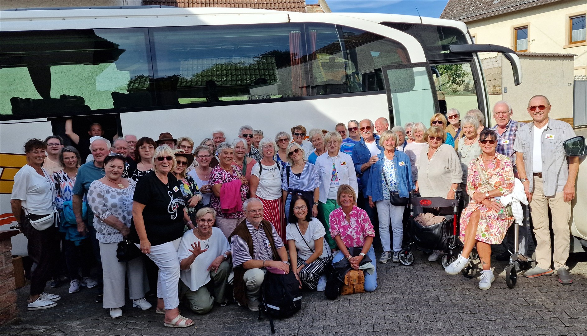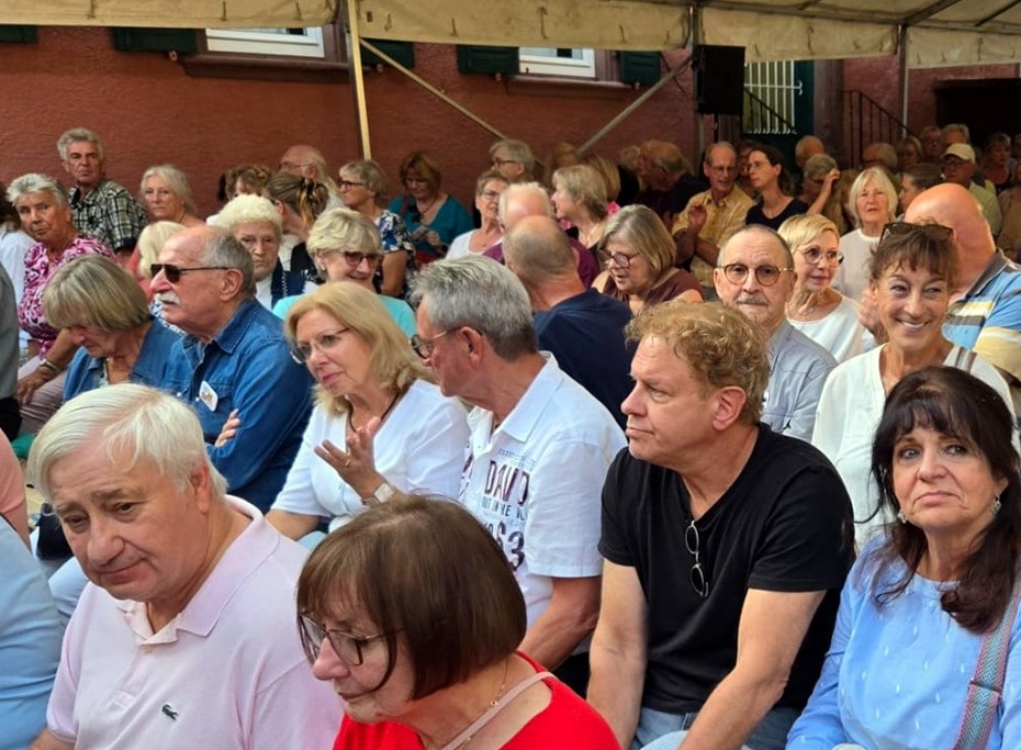 Mit dem Busunternehmen „Hettler“ aus Eppingen-Adelshofen und mit einem gut gelaunten Busfahrer ging es dann los in Richtung Dexheim – ein charmantes Weindorf, das uns mit seinem idyllischen Flair sofort gefiel. Dort angekommen, erwartete uns unter dem Motto „Kultur im Hof“ eine liebevoll gestaltete Kleinkunstbühne im Innenhof des Hofguts. Dank Veranstalter Wolfgang Weyell fand jeder seinen Platz – und wer lieber stehen wollte, wie jeder halt wollte.