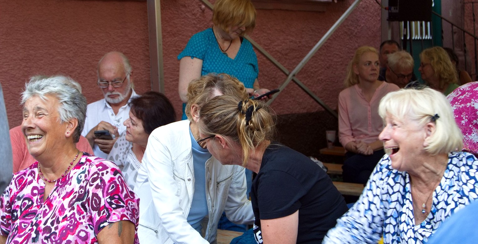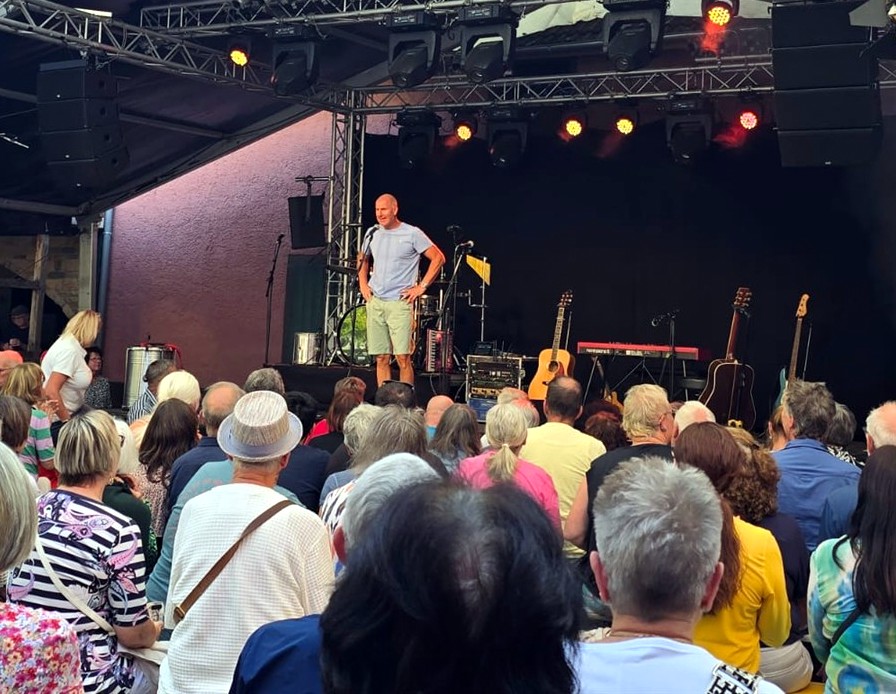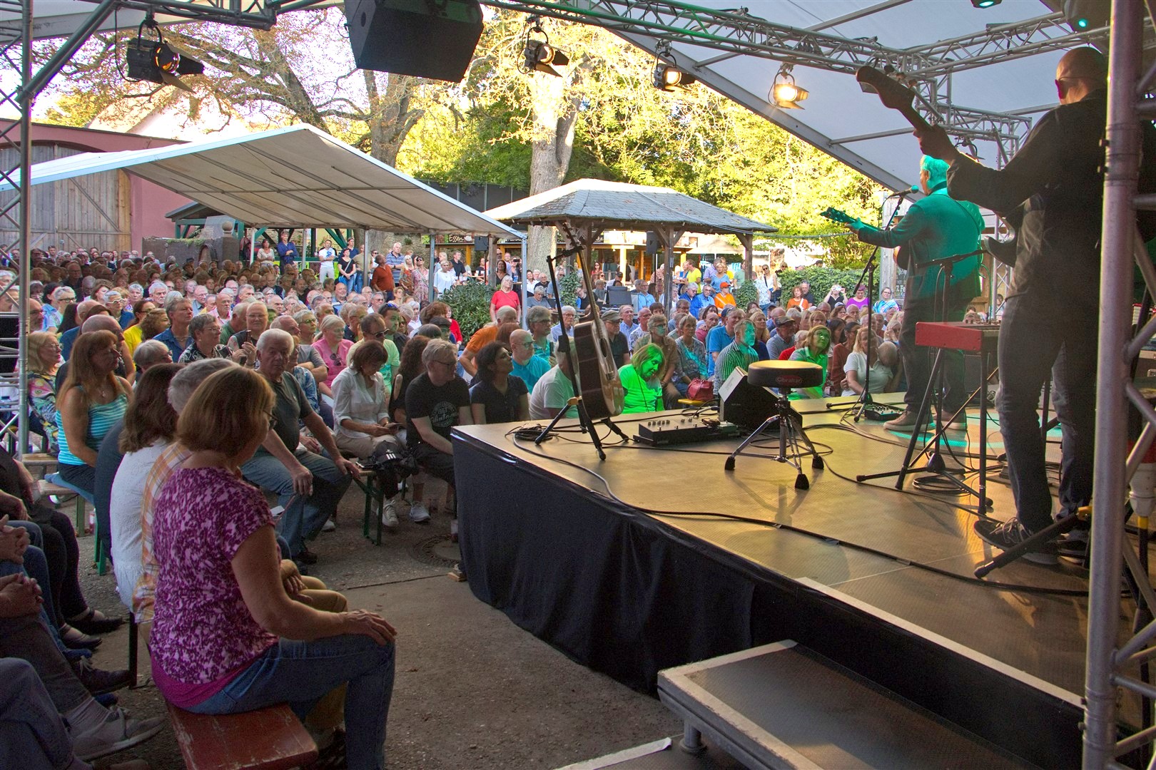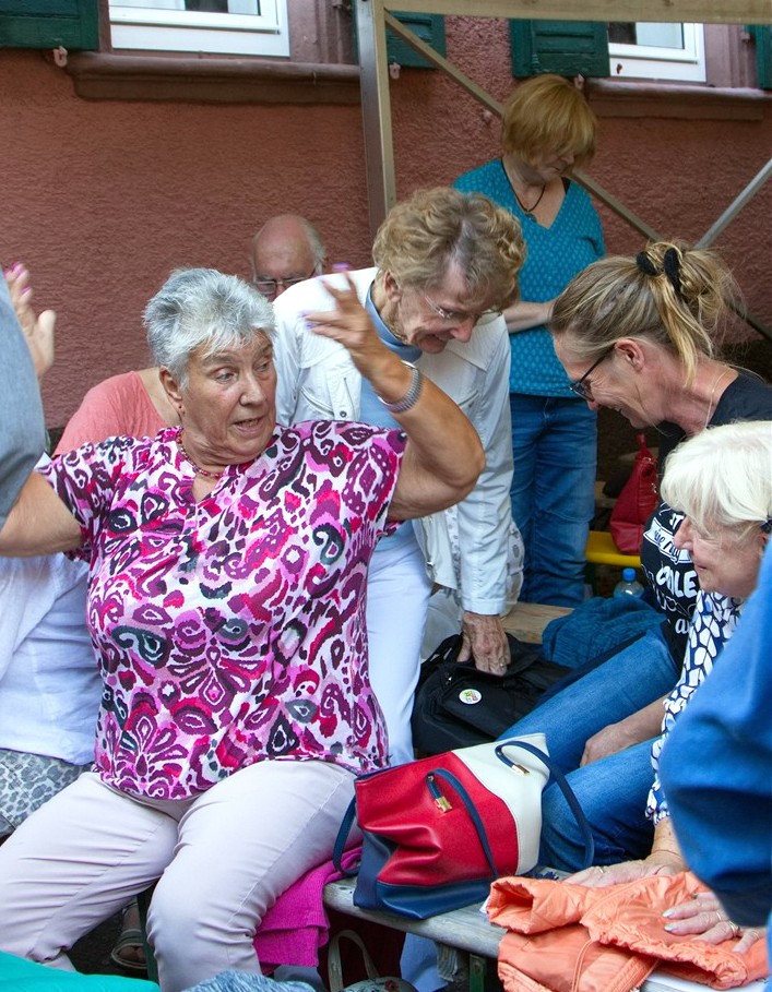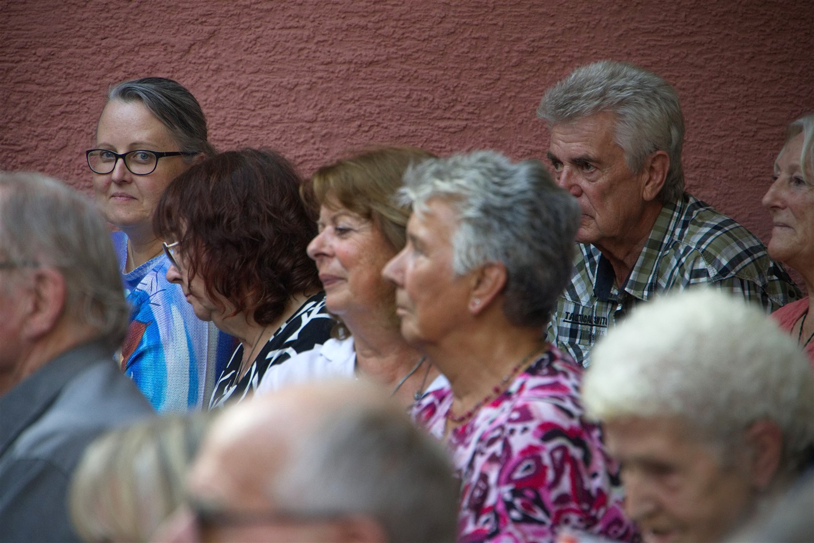 Mit dem Busunternehmen „Hettler“ aus Eppingen-Adelshofen und mit einem gut gelaunten Busfahrer ging es dann los in Richtung Dexheim – ein charmantes Weindorf, das uns mit seinem idyllischen Flair sofort gefiel. Dort angekommen, erwartete uns unter dem Motto „Kultur im Hof“ eine liebevoll gestaltete Kleinkunstbühne im Innenhof des Hofguts. Dank Veranstalter Wolfgang Weyell fand jeder seinen Platz – und wer lieber stehen wollte, wie jeder halt wollte.