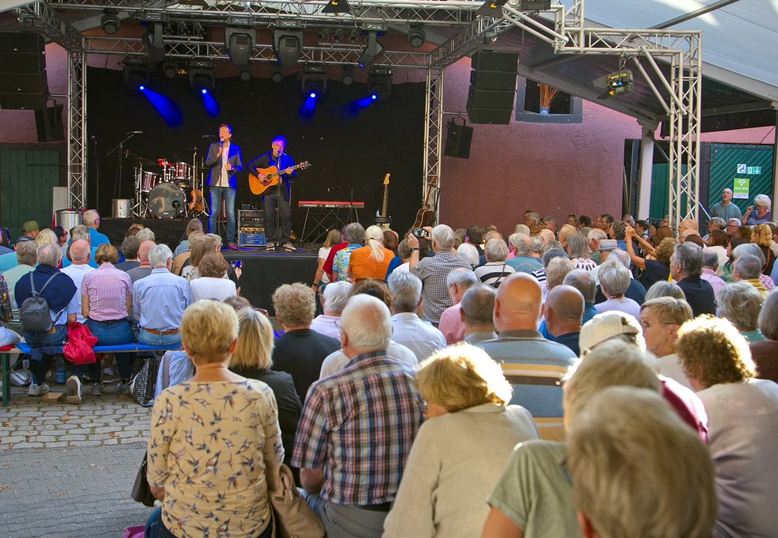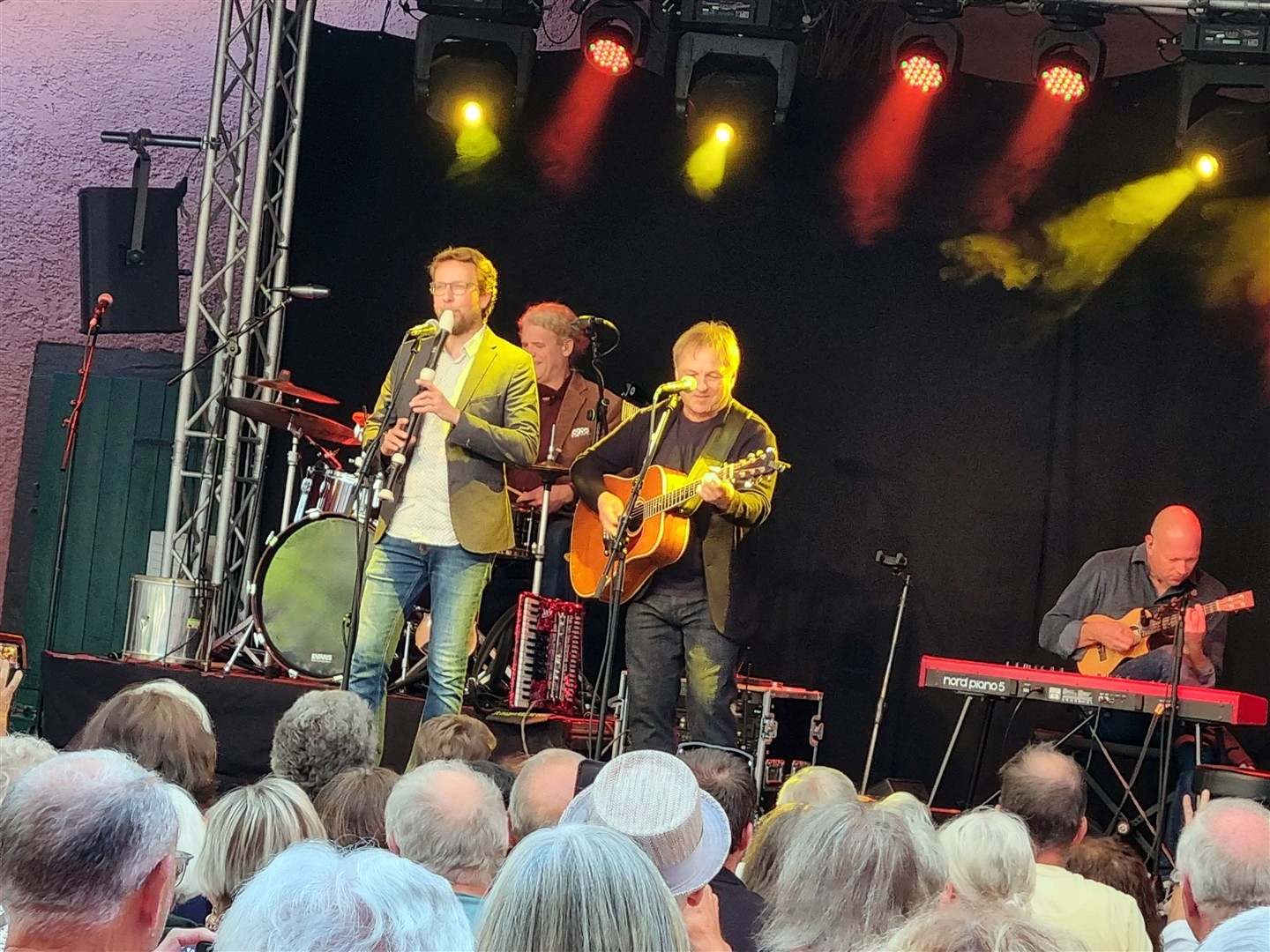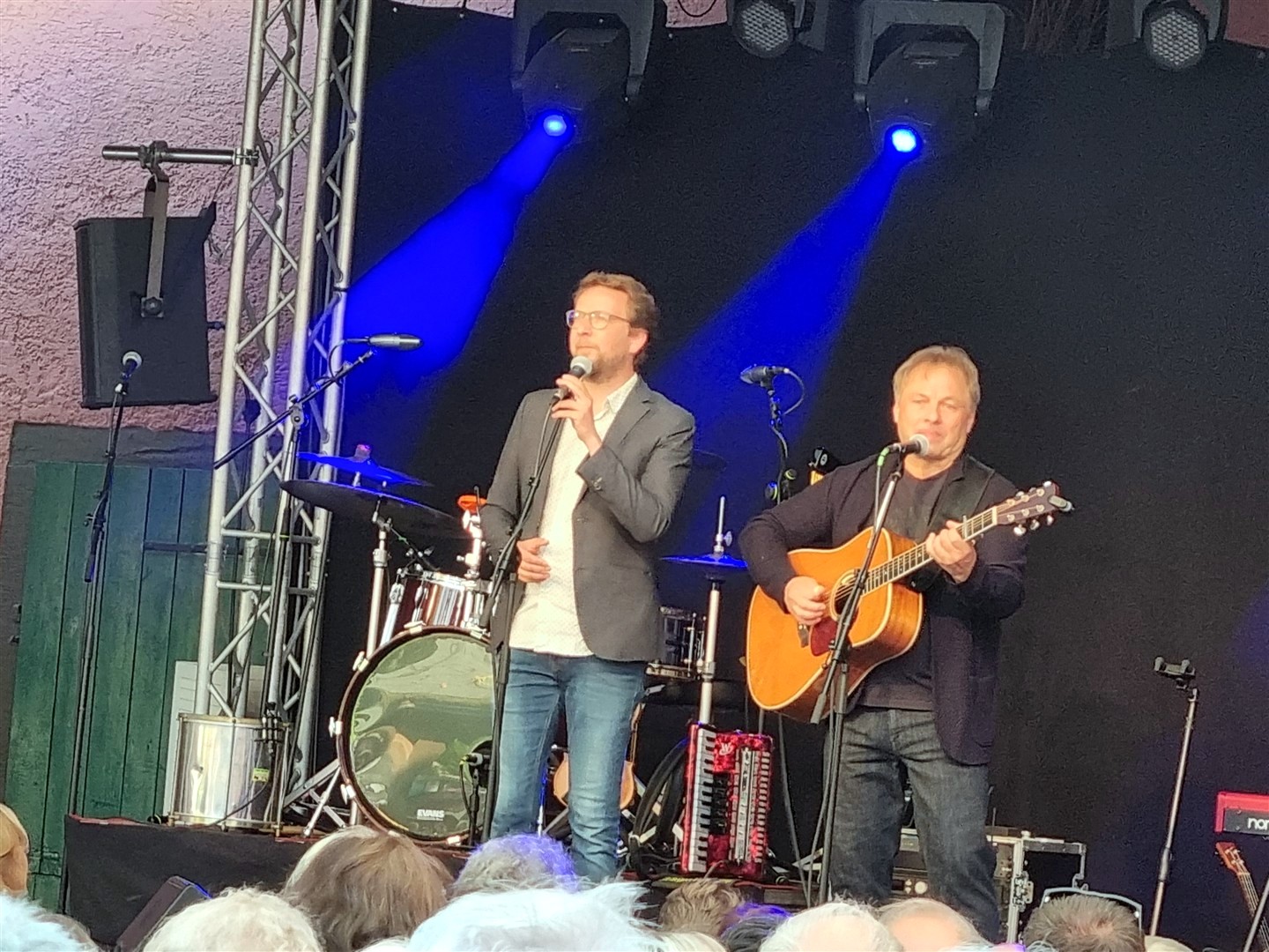 Und dann, pünktlich um 18:00 Uhr, ging’s los: Die „Simon & Garfunkel Tribute Band – Feeling Groovy“ aus Erfurt betrat die Bühne.