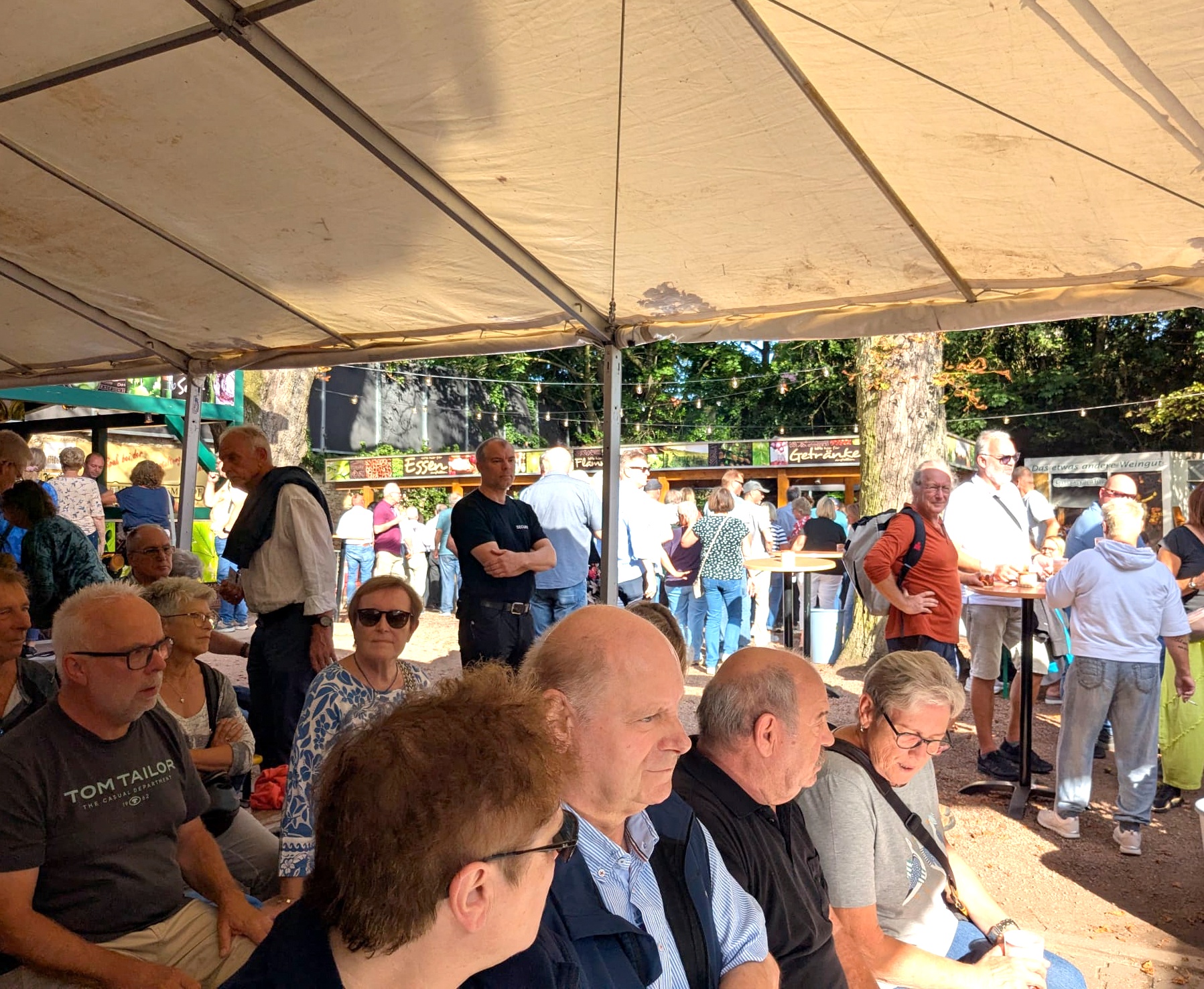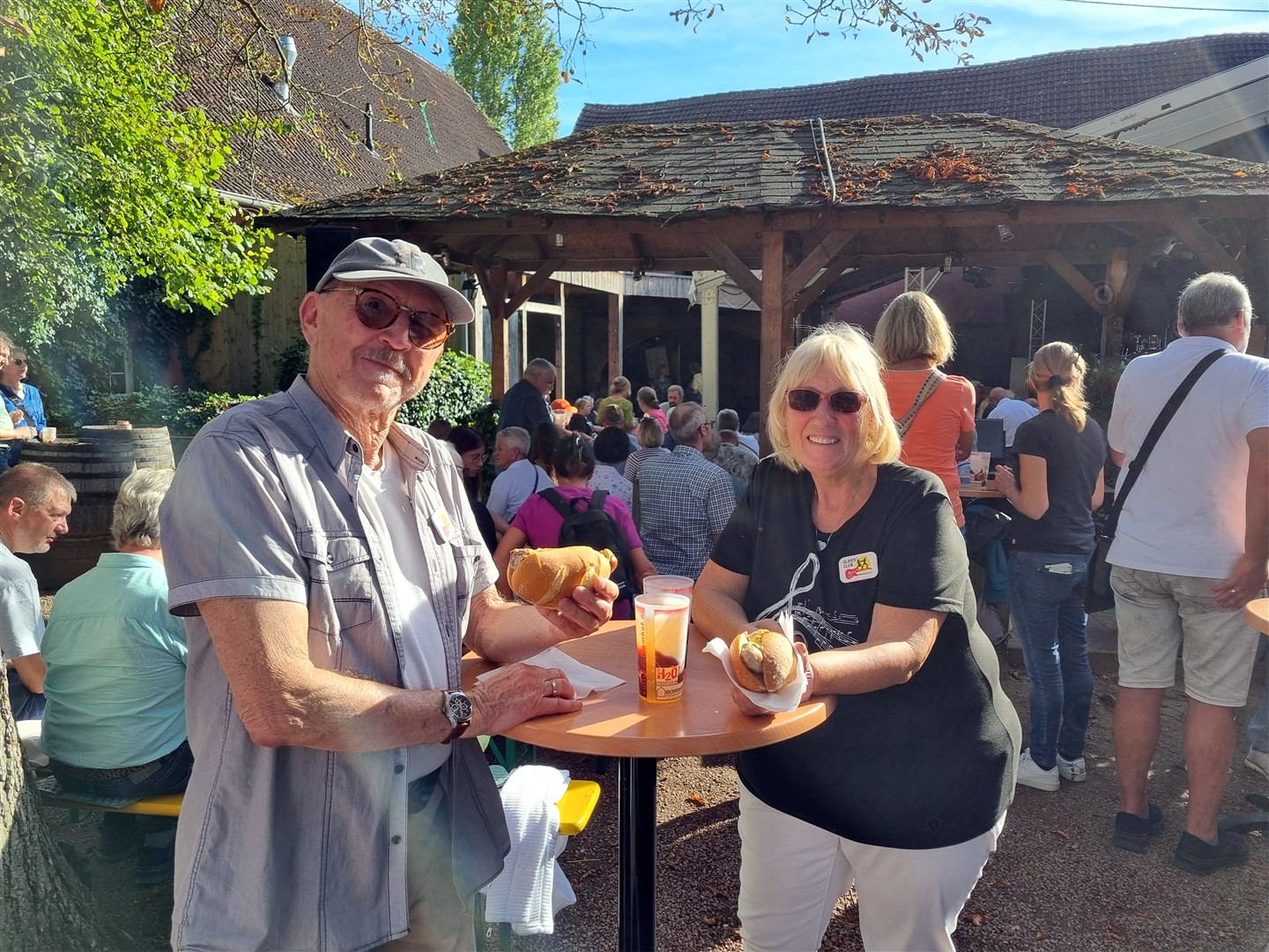 Auch für das leibliche Wohl war auf diesem Hofgut bestens gesorgt. Bratwurst- und Hacksteakbrötchen, Flammkuchen in allen Variationen und dazu ein gutes Glas Wein – da blieb kein Wunsch offen.