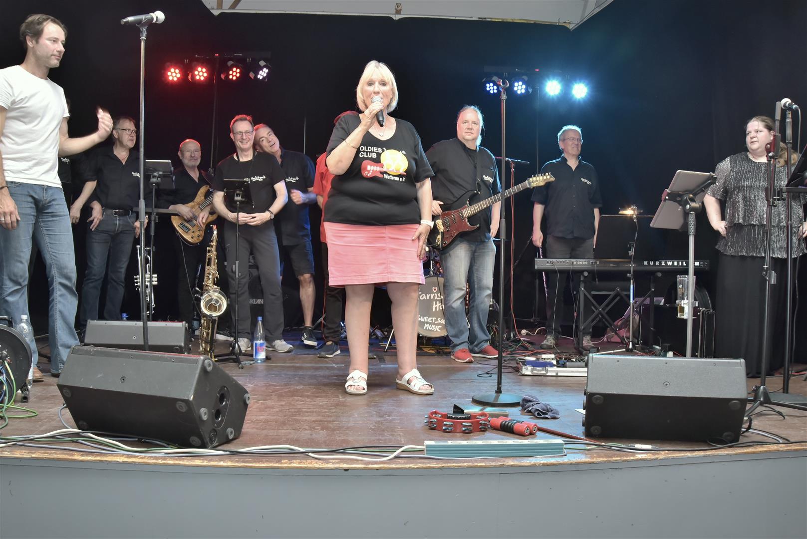Nachdem Moni alle Gäste auf das Herzlichste begrüßt hatte, präsentierte die elfköpfige Formation mit einem groovigen Bläsersatz Music der 60er bis 80er Jahre. Mit großartigen Welthits aus der vergangenen Soulzeit eroberten sie unser tanzfreudiges Publikum, wie unter anderem bei „Papa was A Rolling Stone oder „My Girl“ von den „The Temptations“. Mitgesungen wurde bei „Stand by me“ denn diesen Song kannte jeder.