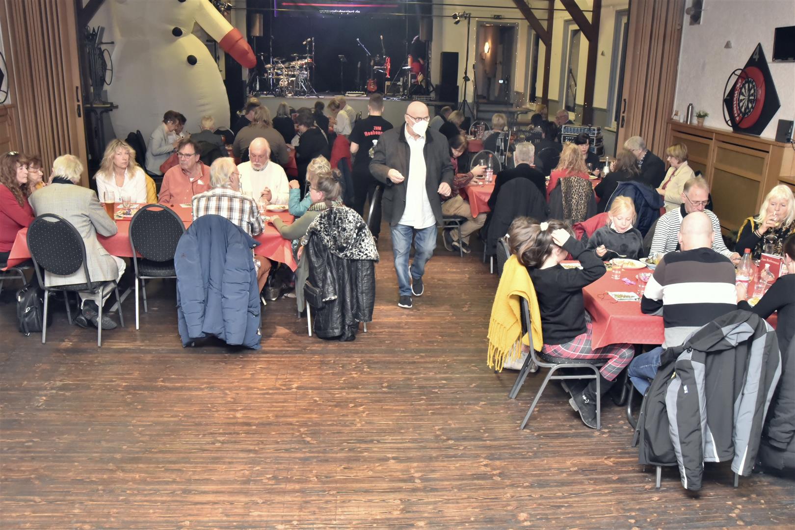 Viele Mitglieder sind und waren im Vorfeld verunsichert. Umso glücklicher und erleichtert waren wir, dass wir diesen Abend nun endlich durchführen konnten. Es wurde wahrhaftig eine gelungene, schöne und harmonische Feier. Alle Tische waren weihnachtlich geschmückt und ein riesiger Schneemann krönte den Saal – sehr originell. Zur Begrüßung wurde jeder Gast mit einem Gläschen Sekt ausgestattet, das kam sehr gut an und unterstützte die eh schon vorhandene Vorfreude bei den Teilnehmern. Unserer Mitgliedsband „Varied Project“ oblag an diesem Abend die musikalische Leitung. Sie hatten wirklich ein tolles Repertoire im Gepäck und es hat so viel Spaß gemacht, all ihre Songs live zu erleben. Mit „Cose Della Vita“ von Eros Ramazotti & Tina Turner fing der Abend schon sehr gut an und unser Enzo, der sich unter den Teilnehmern befand, fühlte sich sogleich heimisch. Super interpretierte Welthits von Bob Marley, Stevie Wonder oder auch Lionel Richie mit „Se La“ kamen bei den Gästen aufs Beste an. Deutsche Songs wie „Sonne in der Nacht“, „Griechischer Wein“ oder Marianne Rosenbergs „Er gehört zu mir“ luden als Gassenhauer zum Mitsingen ein. Es war nicht leicht, bei den Klassikern von Doctor Albans „It‘s my life“ oder „Sing Halleluja“ stillzusitzen und nicht tanzen zu dürfen, wie auch bei Haddaways „What is Love“, aber unser ansonsten recht tanzfreudiges Publikum hat tapfer durchgehalten. In der Pause kam eine Abordnung des Weihnachtsmanns und überraschte die anwesenden Kinder mit Geschenken. Es ist immer schön, in die deren strahlende Augen zu sehen. Dies erinnerte uns ein wenig an unsere eigene Kindheit.
