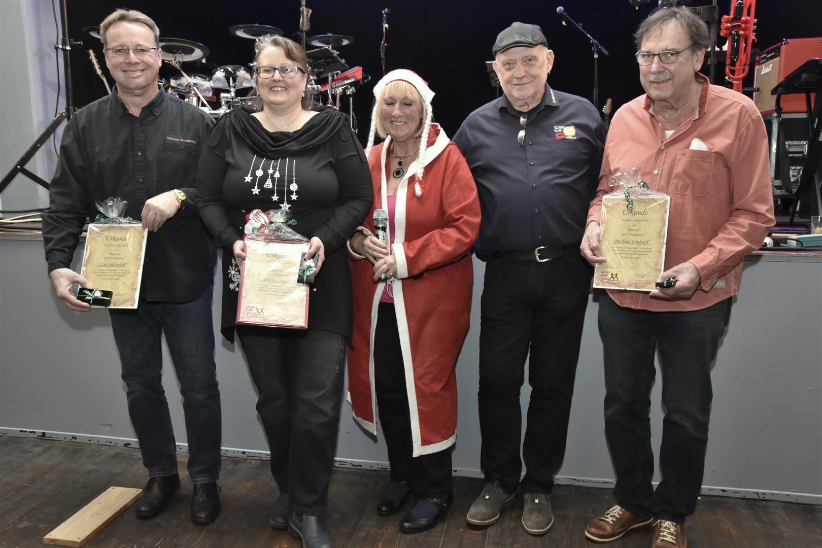 25 Jahre Oldies Club Wetterau, gegründet am 3. September 1996, was für ein Jahr. Wie schnell doch die Zeit vergangen ist. Die Gründungsmitglieder Britta Simon, Lars Haberlah und Michael Limbach erhielten die Ehrennadel in Gold und je eine Urkunde vom Vorstand. Für 15 Jahre treue Mitgliedschaft erhielten Christel und Volkmar Später die Ehrennadel in Silber. Herzlichen Glückwunsch! Als Geburtstagskind des Abends wurde Thomas Merkel mit einer Flasche OCW-Schampus überrascht.